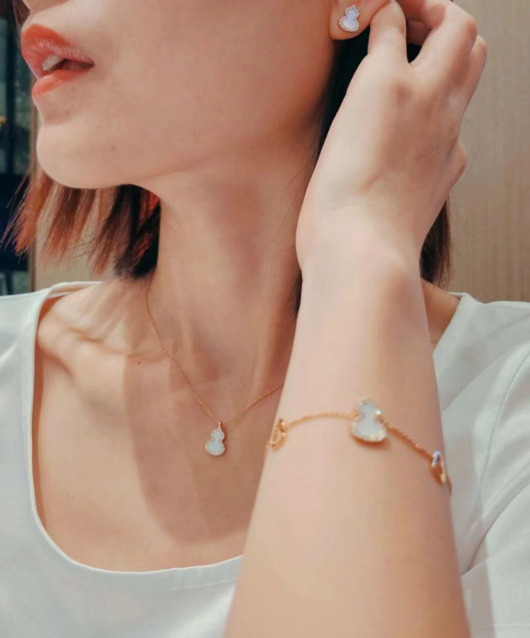 葫芦,吸财纳福寓意好,通体V金电镀厚金 升级为0.5厚金➕钯金,都是玫瑰金色天然石
