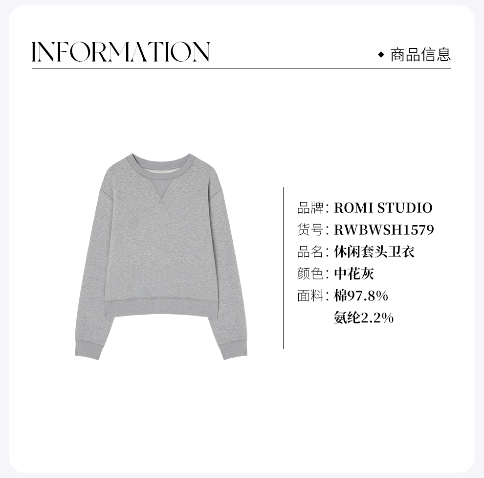 ROMI STUDIO“美式休闲”高克重棉加绒加厚花纱套头卫衣 RWBWSH1579