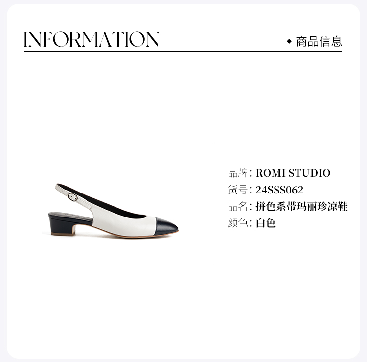 ROMI STUDIO“优雅经典”软黄金小羊皮拼色系带玛丽珍凉鞋24SSS062
