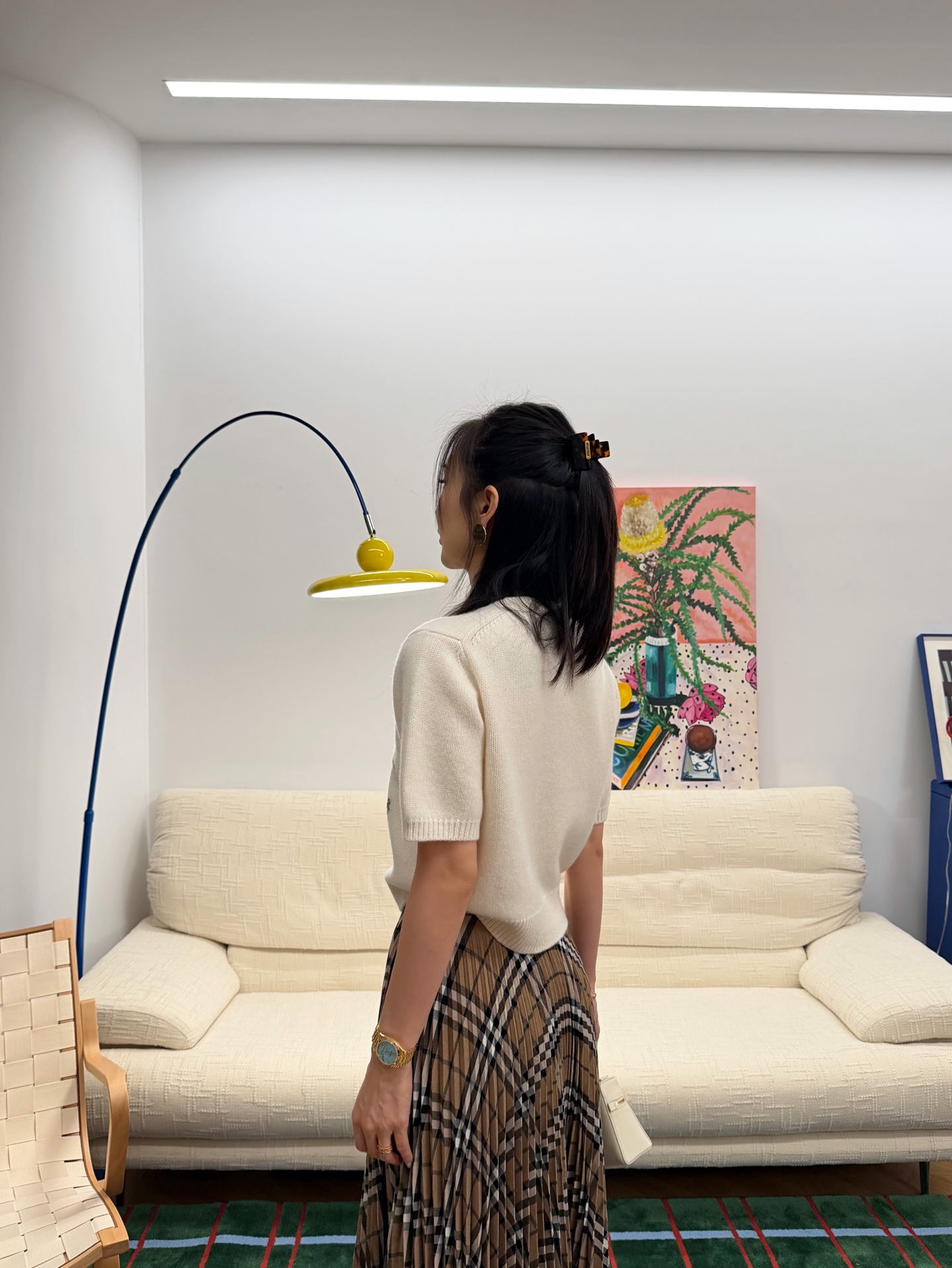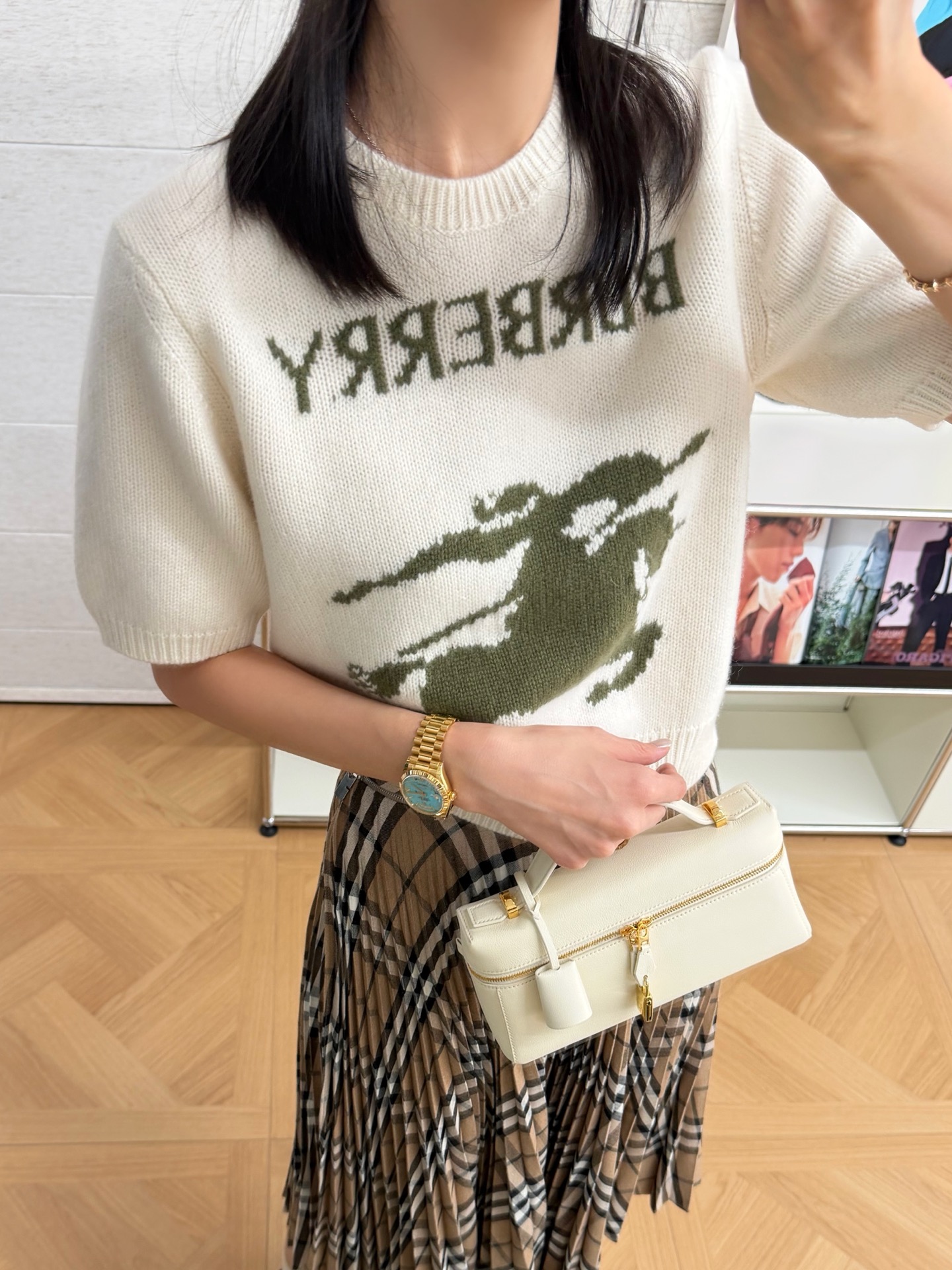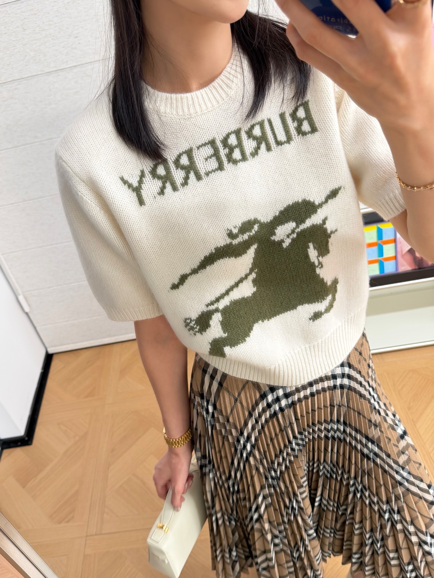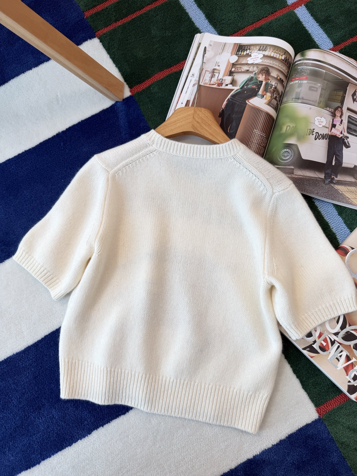 新款 奶油色骑士针织短袖,真的值得入手, 70%绵羊毛+30%山羊绒混纺,软糯亲肤到像拥抱云朵☁️奶杏色调,温柔又贵气,胸口马术骑士徽标直接把贵气值拉满‼️一件穿出「人间富贵花」氛围感,内搭天花板非它莫属,这件针织强推,面料极细的织片打造➕针脚细密有光泽,低调中透着高级感〰️真的放心买,高级感十足👍🏻怎么穿搭都不会出错的万能百搭款✔️码数SML
