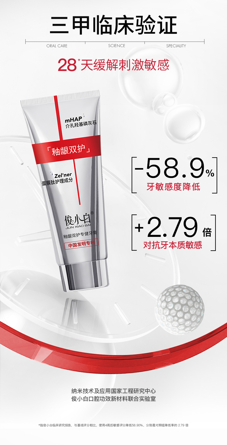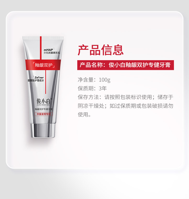 【功效:牙龈修护+牙釉质修护】俊小白釉龈双护牙膏 独家介孔羟基磷灰石+超分子蛋膜肽