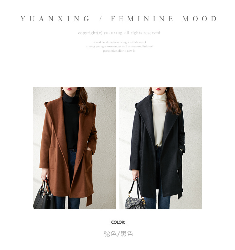 【秋季新款】加厚连帽羊毛大衣女2023秋冬季新款宽松显瘦洋气女士毛呢外套