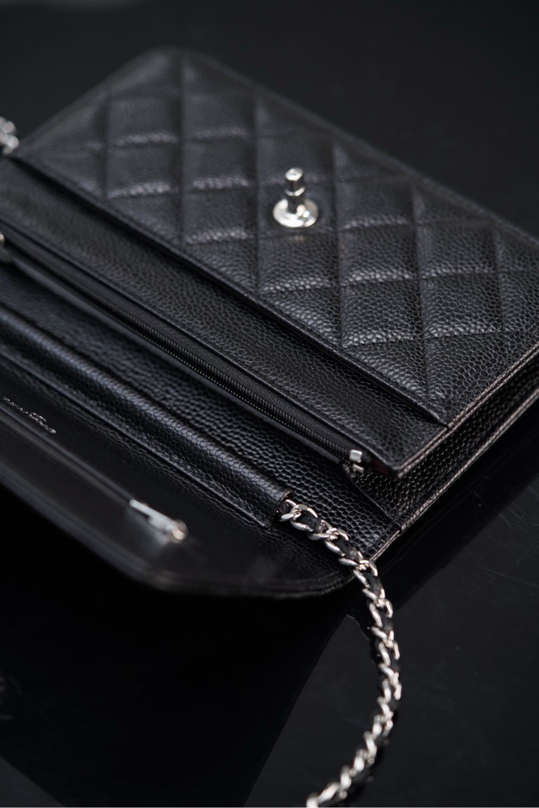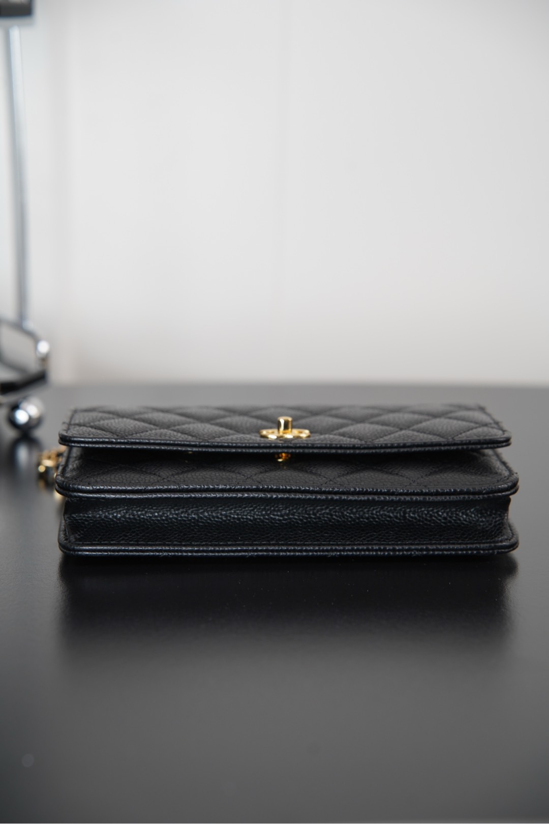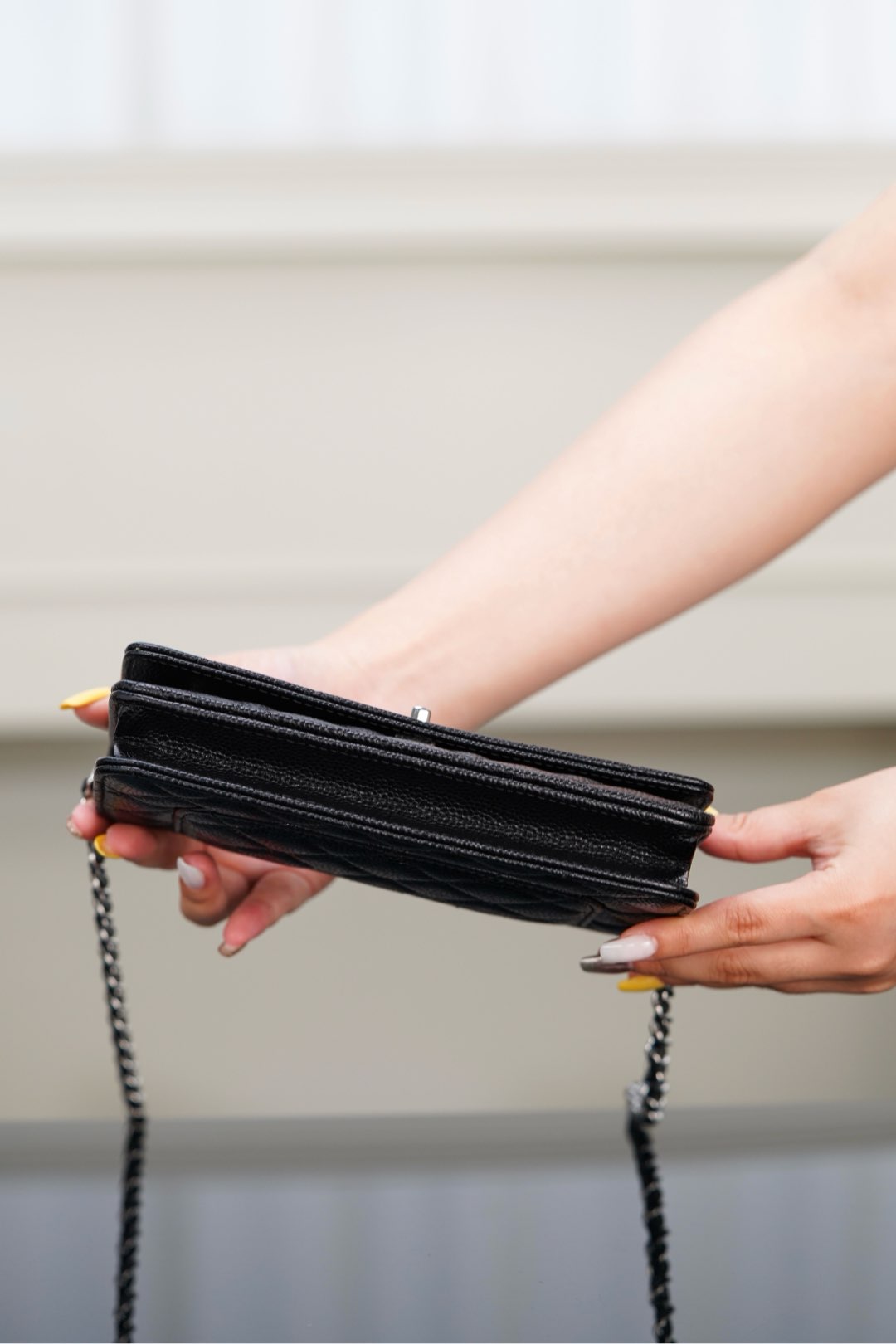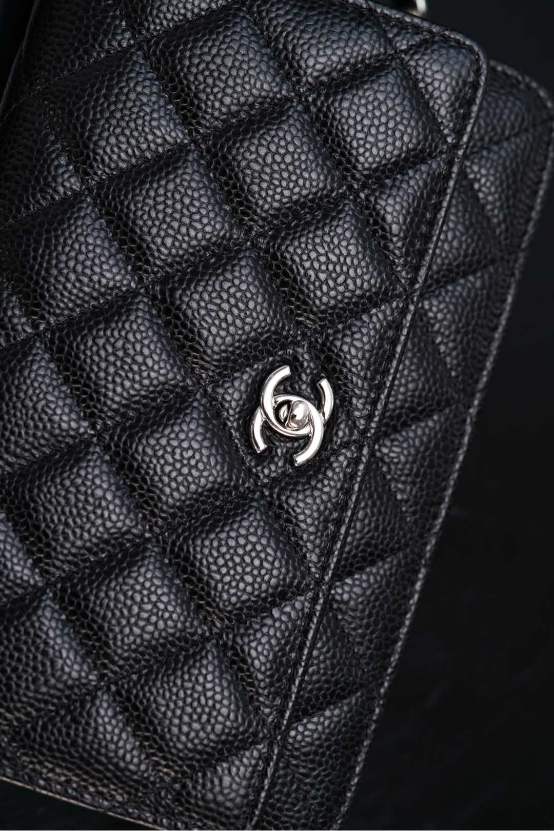 𝐂𝐡𝐚𝐧𝐞𝐥 𝟐𝟒𝐤 𝐰𝐨𝐜发财包(纽扣版)黑牛金🖤 外观与经典𝐰𝐨𝐜一样~做了超棒的升级!! 区别在于双𝐂的开合方式不一样了🔍 原来的磁扣、升级成旋转纽扣啦!✌🏻 旋转开合使用起来更有安全感🤩 并且!双𝐂 𝐥𝐨𝐠𝐨 会比经典款的更大!看起来更大气、更有档次✨ 黑金荔枝牛耐磨、内里和经典𝐰𝐨𝐜一样!入门首选这款包✔️! 尺寸:𝟏𝟗𝐜𝐦