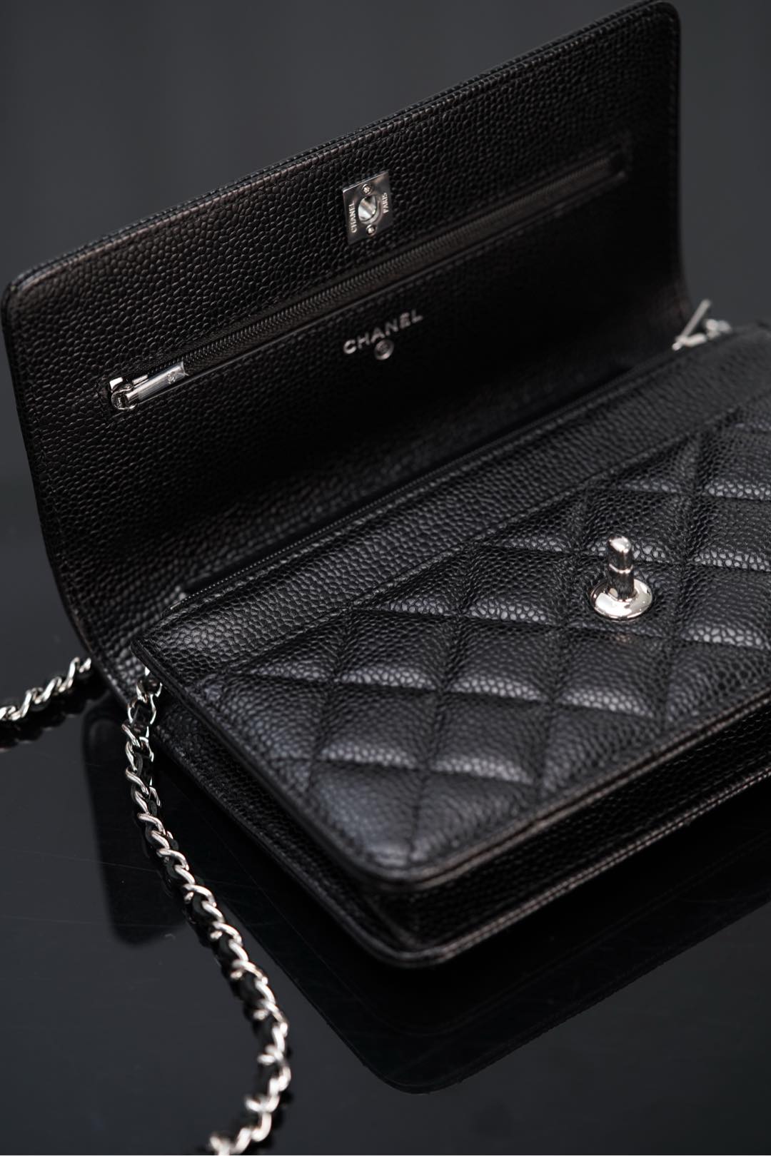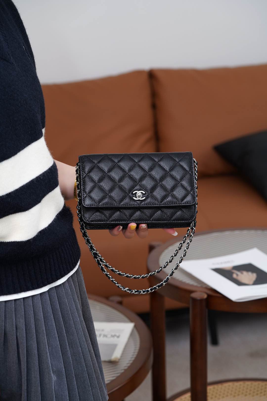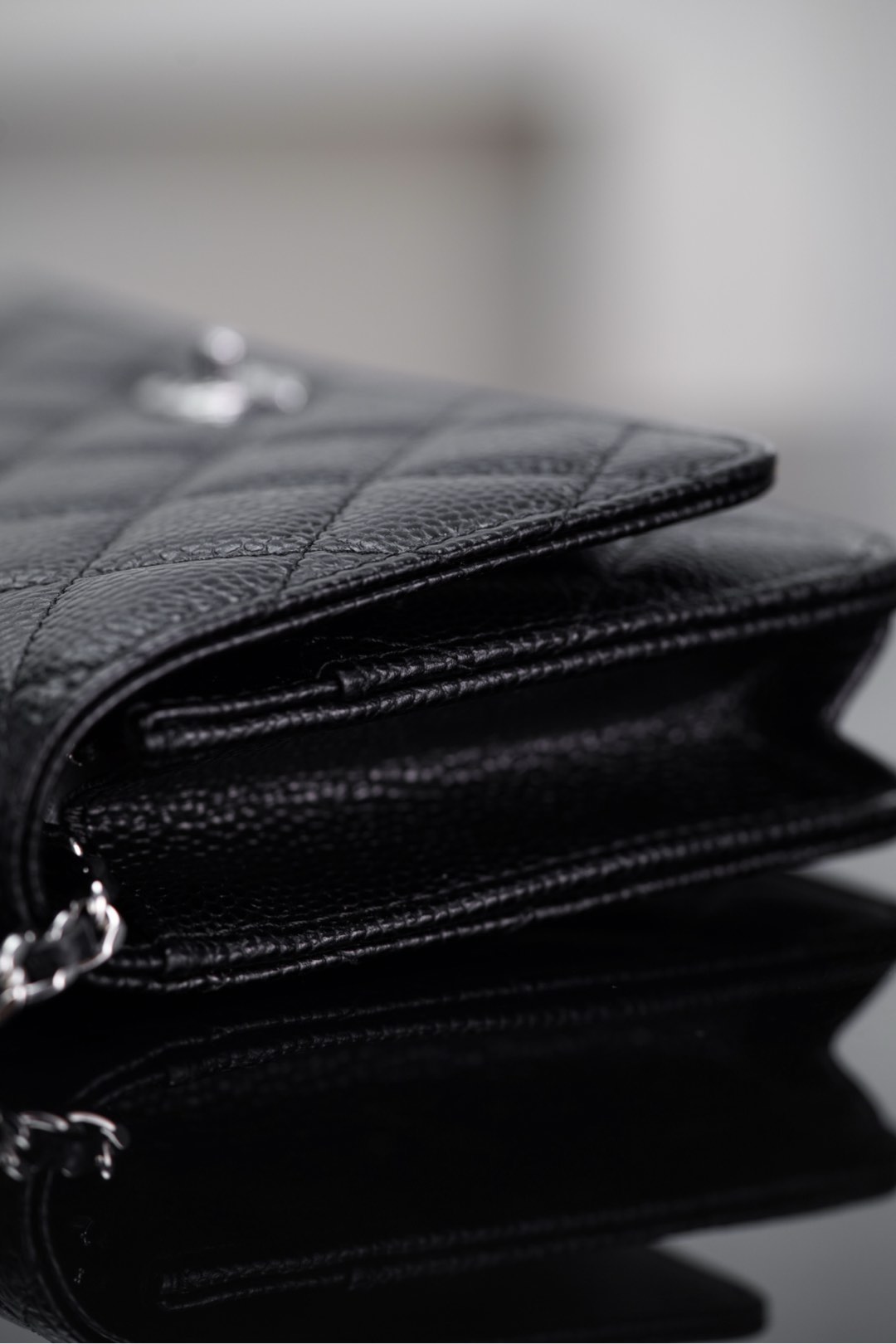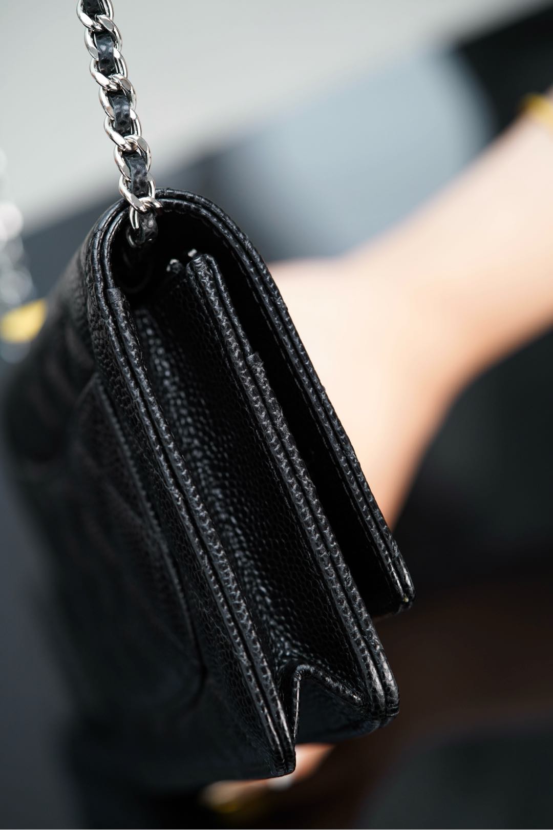 𝐂𝐡𝐚𝐧𝐞𝐥 𝟐𝟒𝐤 𝐰𝐨𝐜发财包(纽扣版)黑牛金🖤 外观与经典𝐰𝐨𝐜一样~做了超棒的升级!! 区别在于双𝐂的开合方式不一样了🔍 原来的磁扣、升级成旋转纽扣啦!✌🏻 旋转开合使用起来更有安全感🤩 并且!双𝐂 𝐥𝐨𝐠𝐨 会比经典款的更大!看起来更大气、更有档次✨ 黑金荔枝牛耐磨、内里和经典𝐰𝐨𝐜一样!入门首选这款包✔️! 尺寸:𝟏𝟗𝐜𝐦