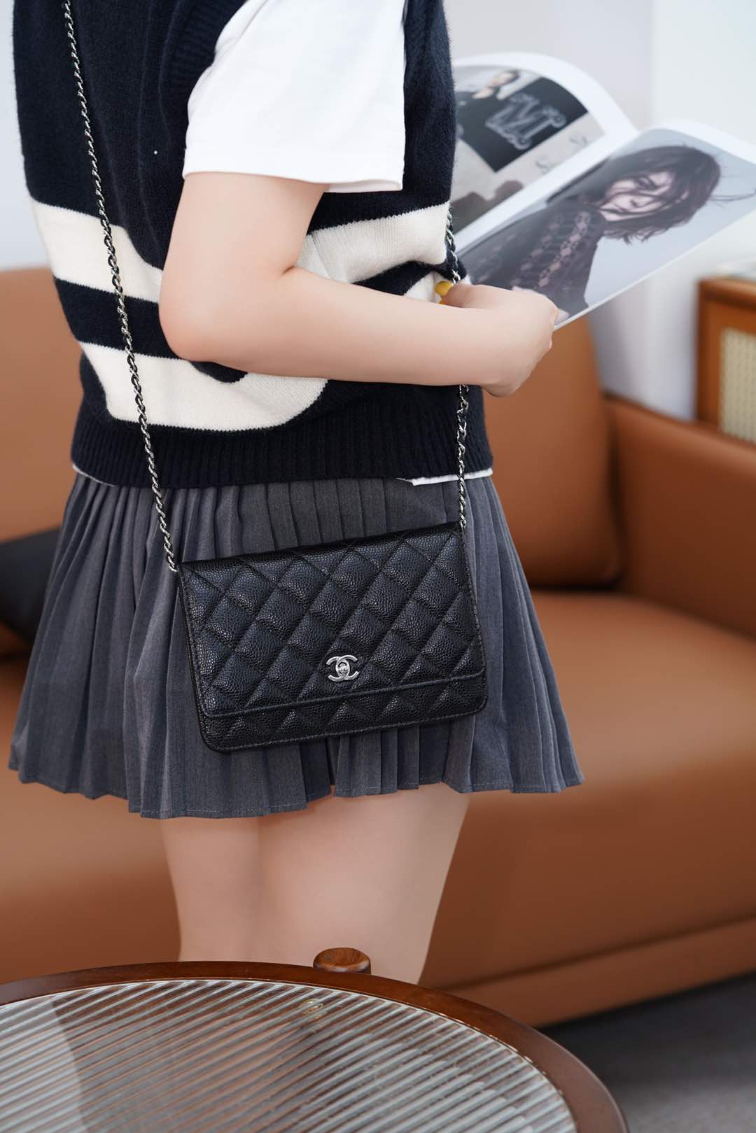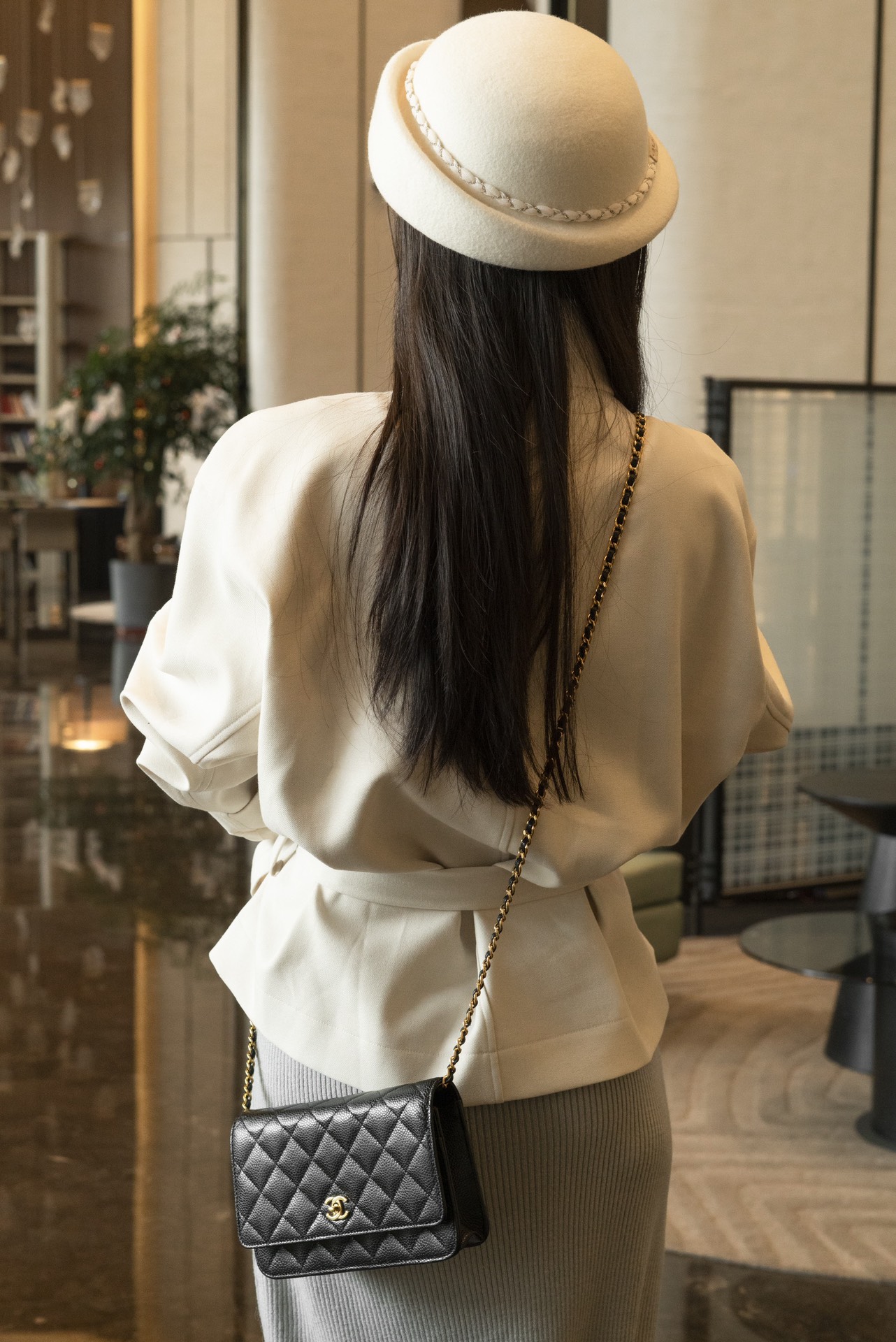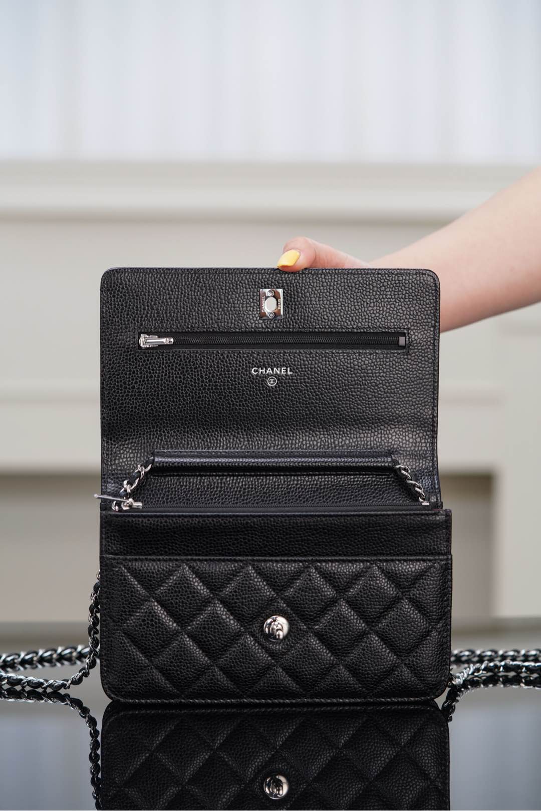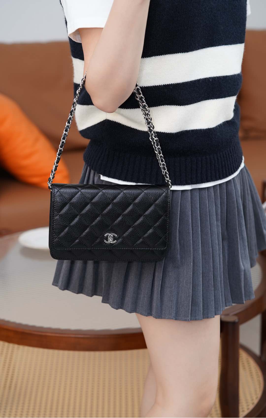 𝐂𝐡𝐚𝐧𝐞𝐥 𝟐𝟒𝐤 𝐰𝐨𝐜发财包(纽扣版)黑牛金🖤 外观与经典𝐰𝐨𝐜一样~做了超棒的升级!! 区别在于双𝐂的开合方式不一样了🔍 原来的磁扣、升级成旋转纽扣啦!✌🏻 旋转开合使用起来更有安全感🤩 并且!双𝐂 𝐥𝐨𝐠𝐨 会比经典款的更大!看起来更大气、更有档次✨ 黑金荔枝牛耐磨、内里和经典𝐰𝐨𝐜一样!入门首选这款包✔️! 尺寸:𝟏𝟗𝐜𝐦