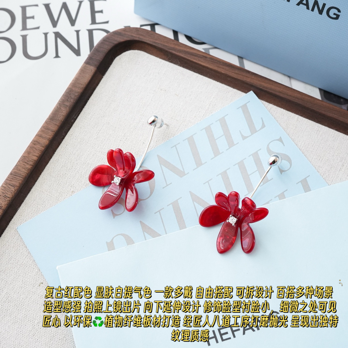 造型感强 拍照上镜出片 向下延伸设计 修饰脸型衬脸小,细微之处可见匠心 以环保♻️植物纤维板材打造 经匠人八道工序打磨抛光 呈现出独特纹理质感