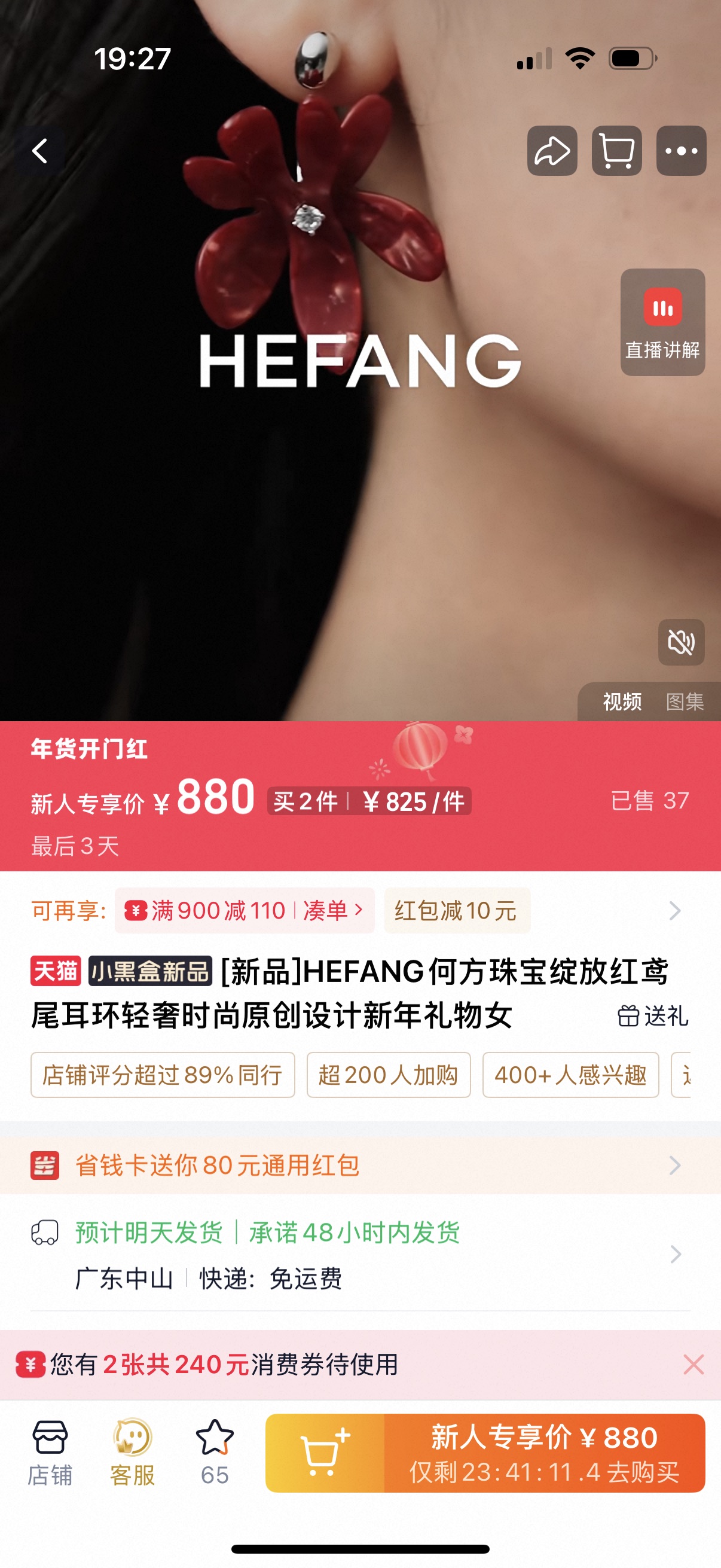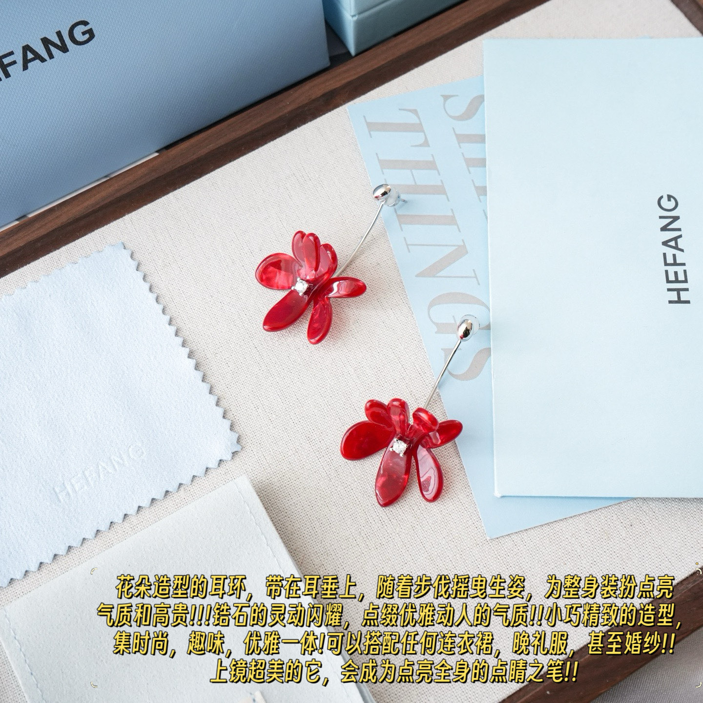 HEFANG 何方2026萌趣新年系列 绽放红鸢尾耳环