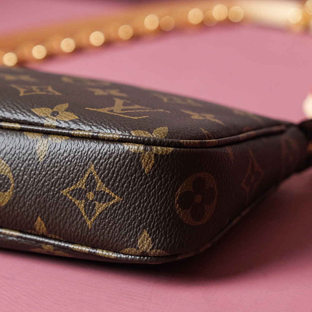 Pochette Accessoires 新款大麻将 老花 皮料是意大利A级皮料是在于品质、五金、面料、手工、油边、A级出品、配全套包装.尺寸:23.5x13.5x4CM