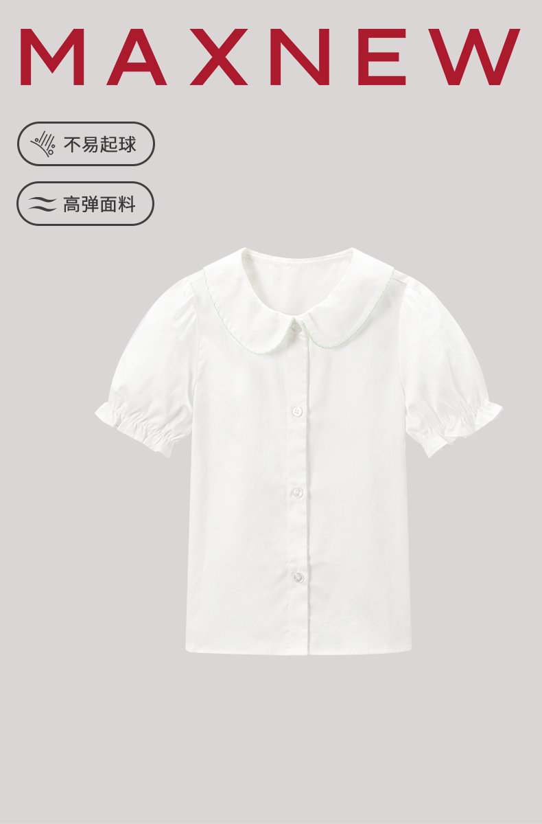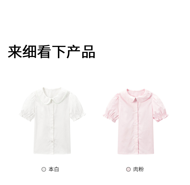 【衬衫】小童撞色花边领泡泡袖甜美衬衫 1N2351301