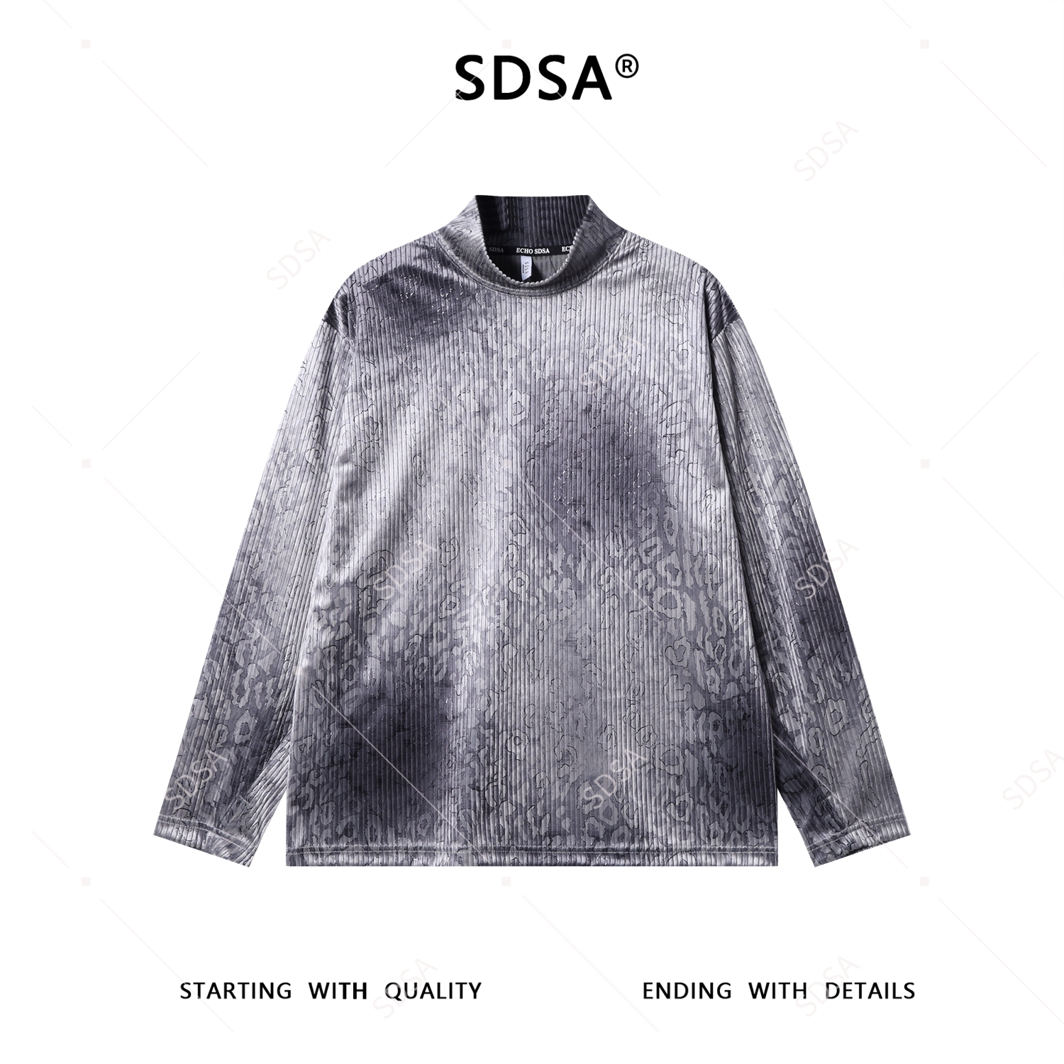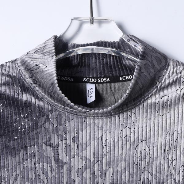 T5002SDSA男士秋冬新款痞帅男装简约渐变豹纹半高领长袖T恤设计师上衣