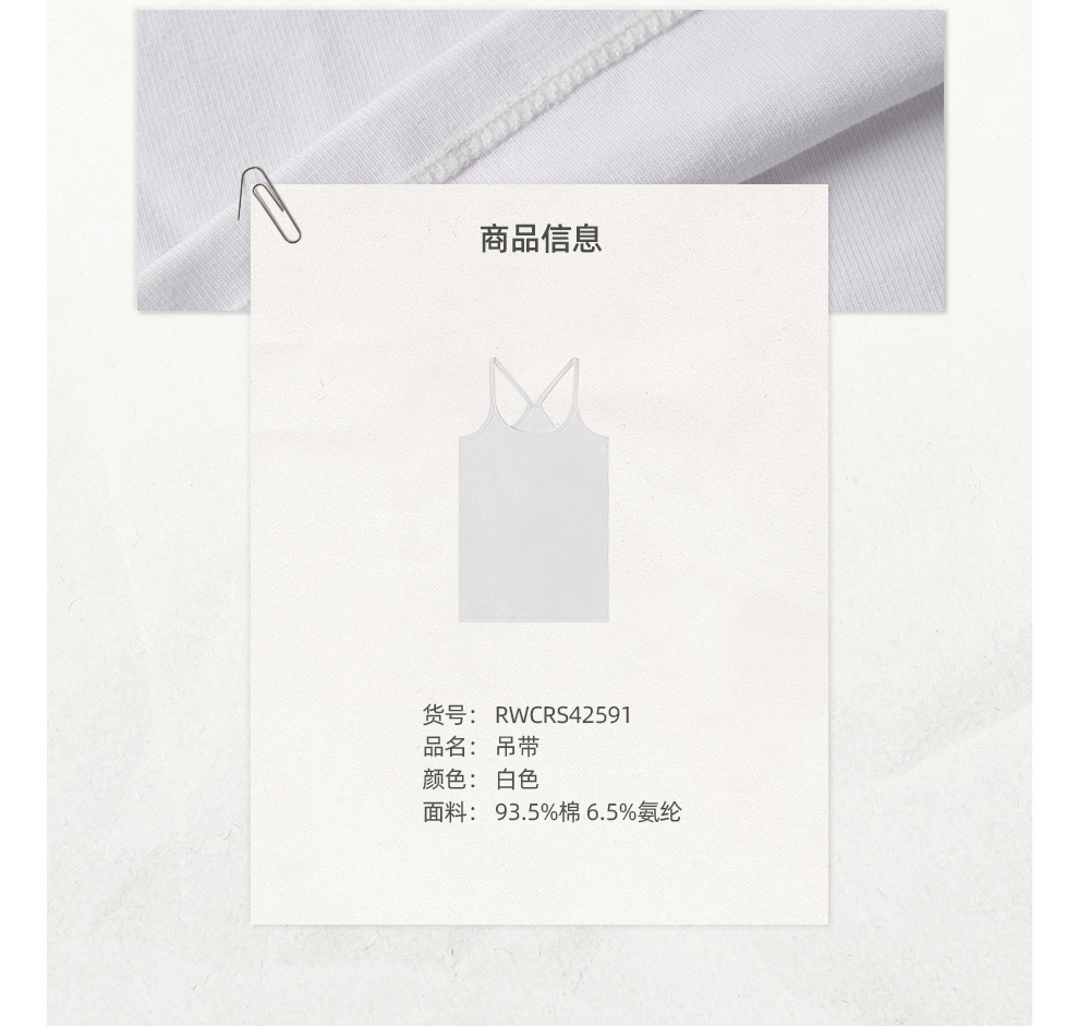 ROMI STUDIO“Clean fit”棉质弹力罗纹U领工字吊带背心 RWCRS42591【发货时间25-30天】