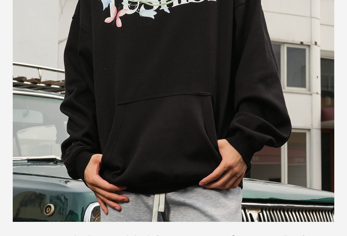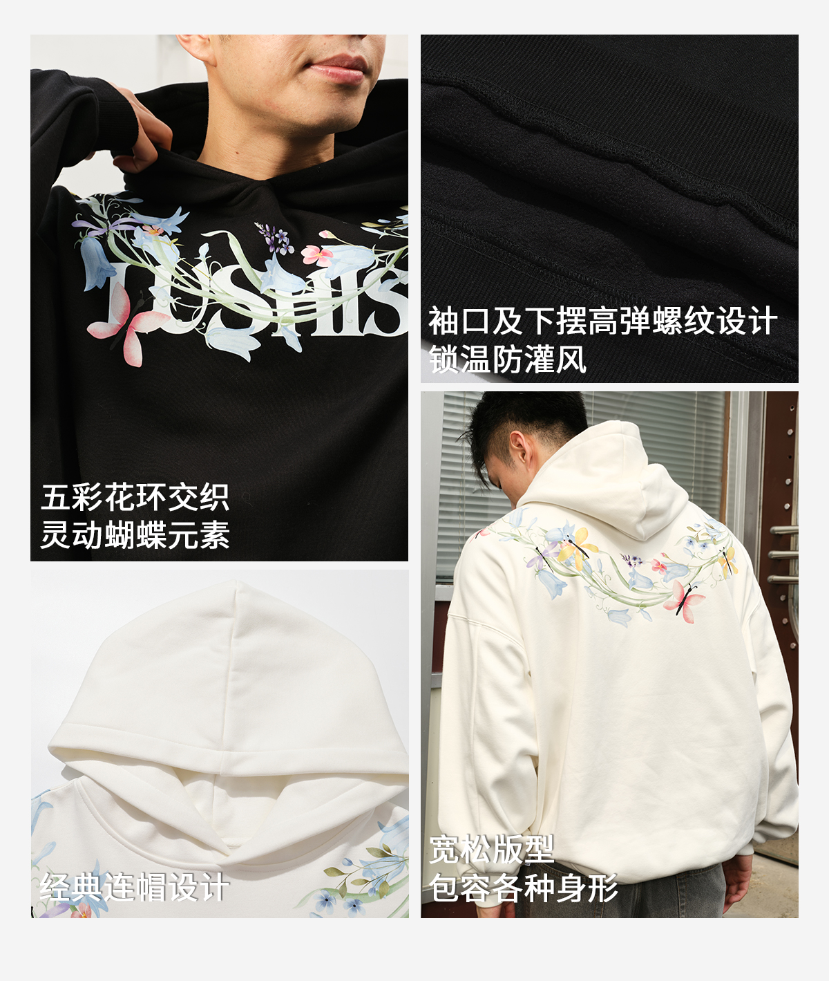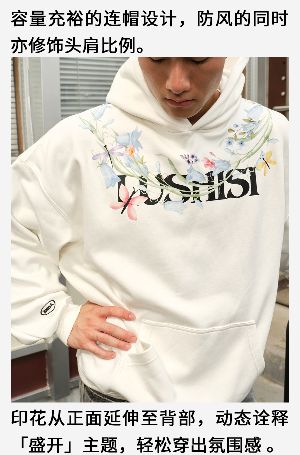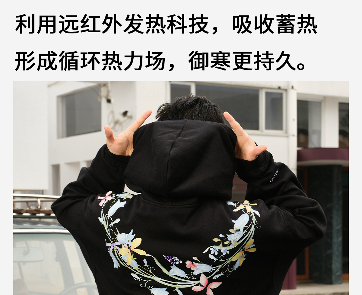 录士LUSHISI盛开连帽卫衣365g重磅抓绒保暖恒温暖皮宽松落肩版型