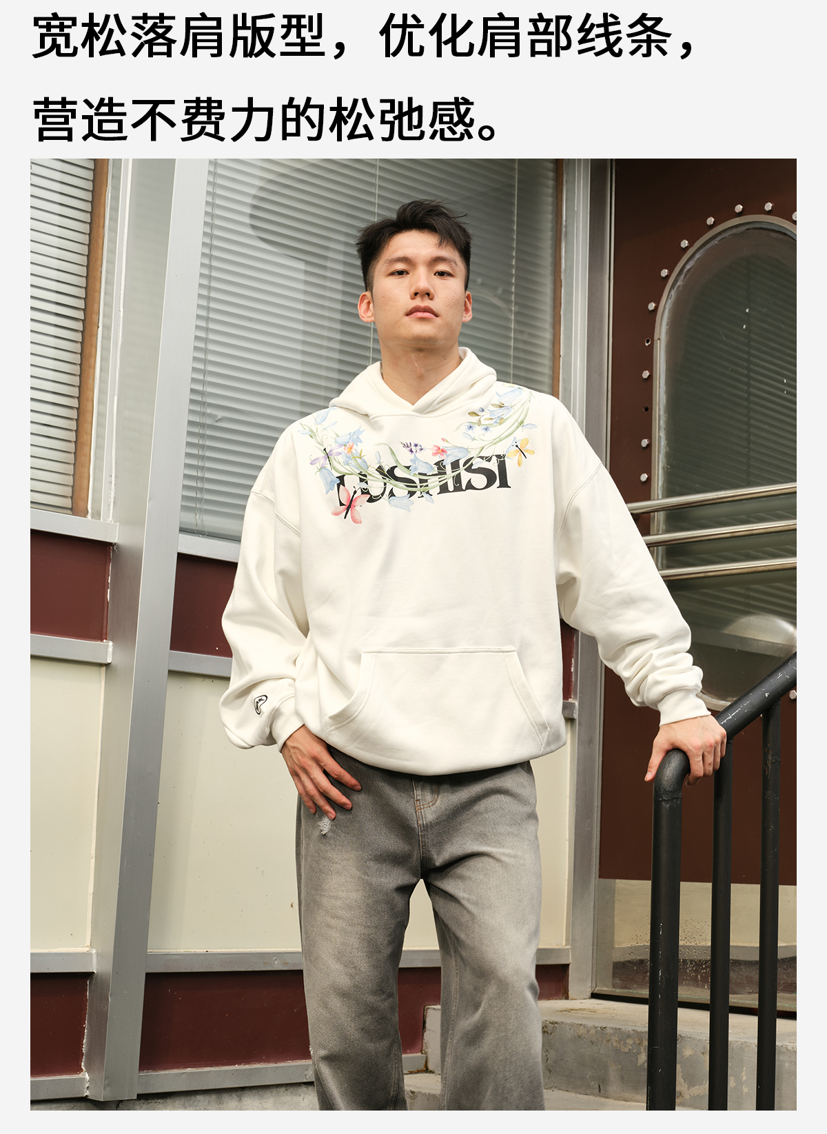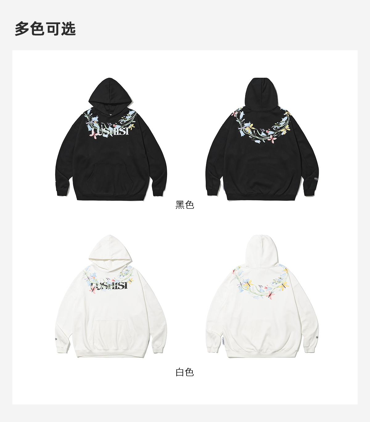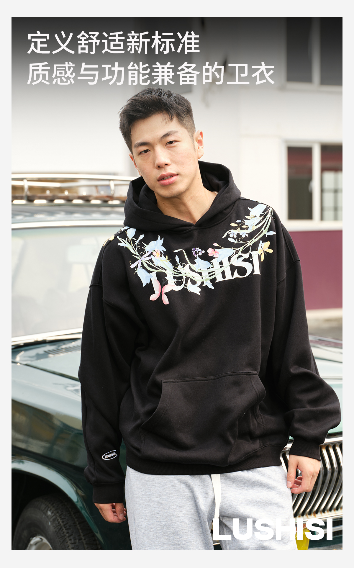 录士LUSHISI盛开连帽卫衣365g重磅抓绒保暖恒温暖皮宽松落肩版型