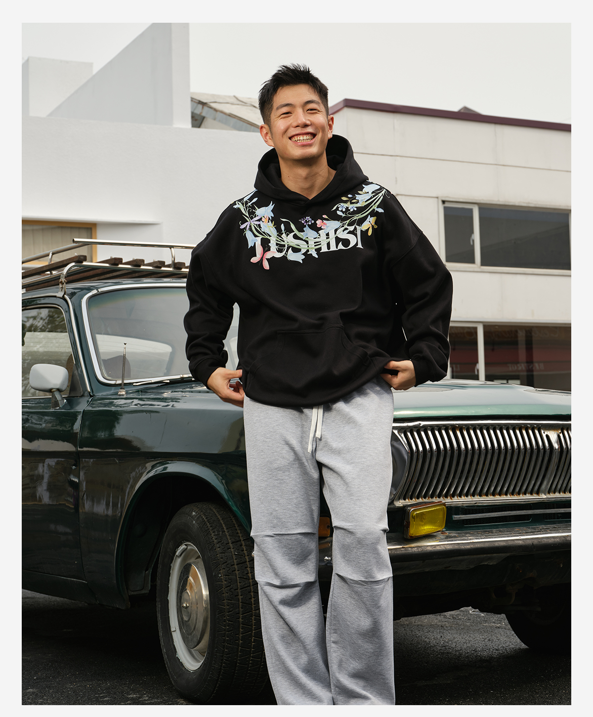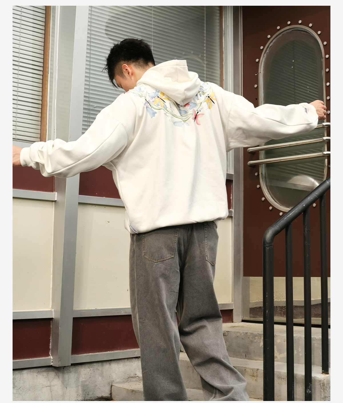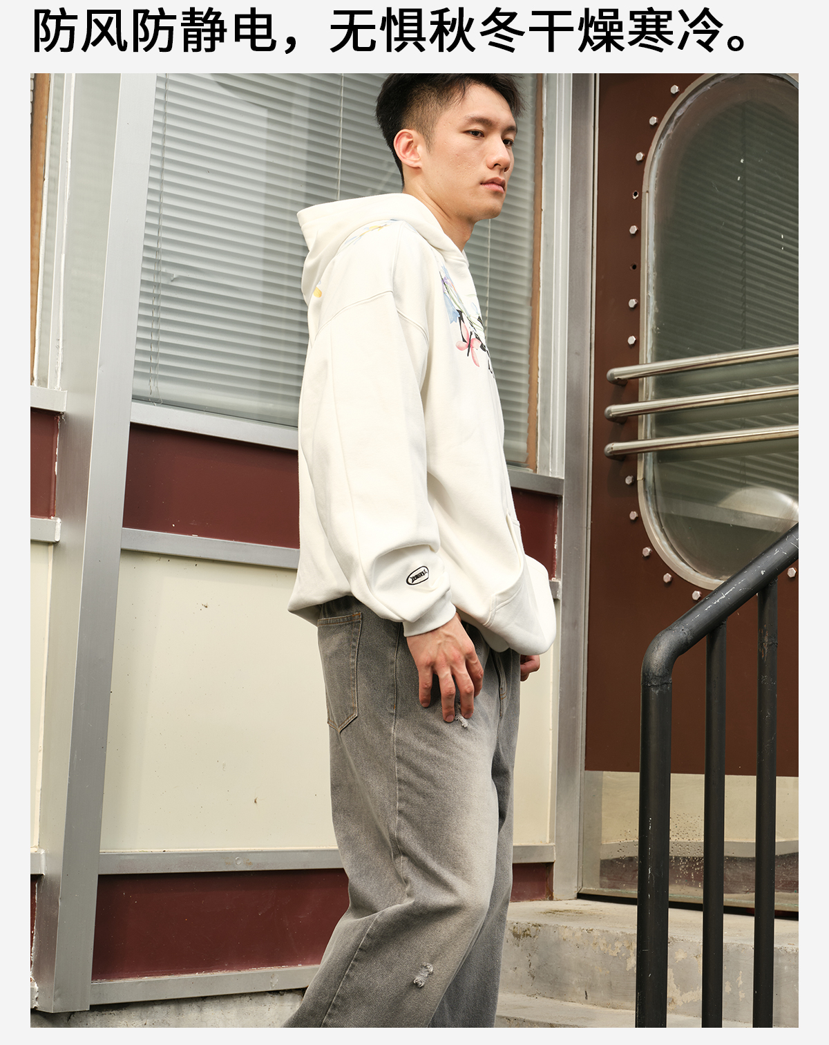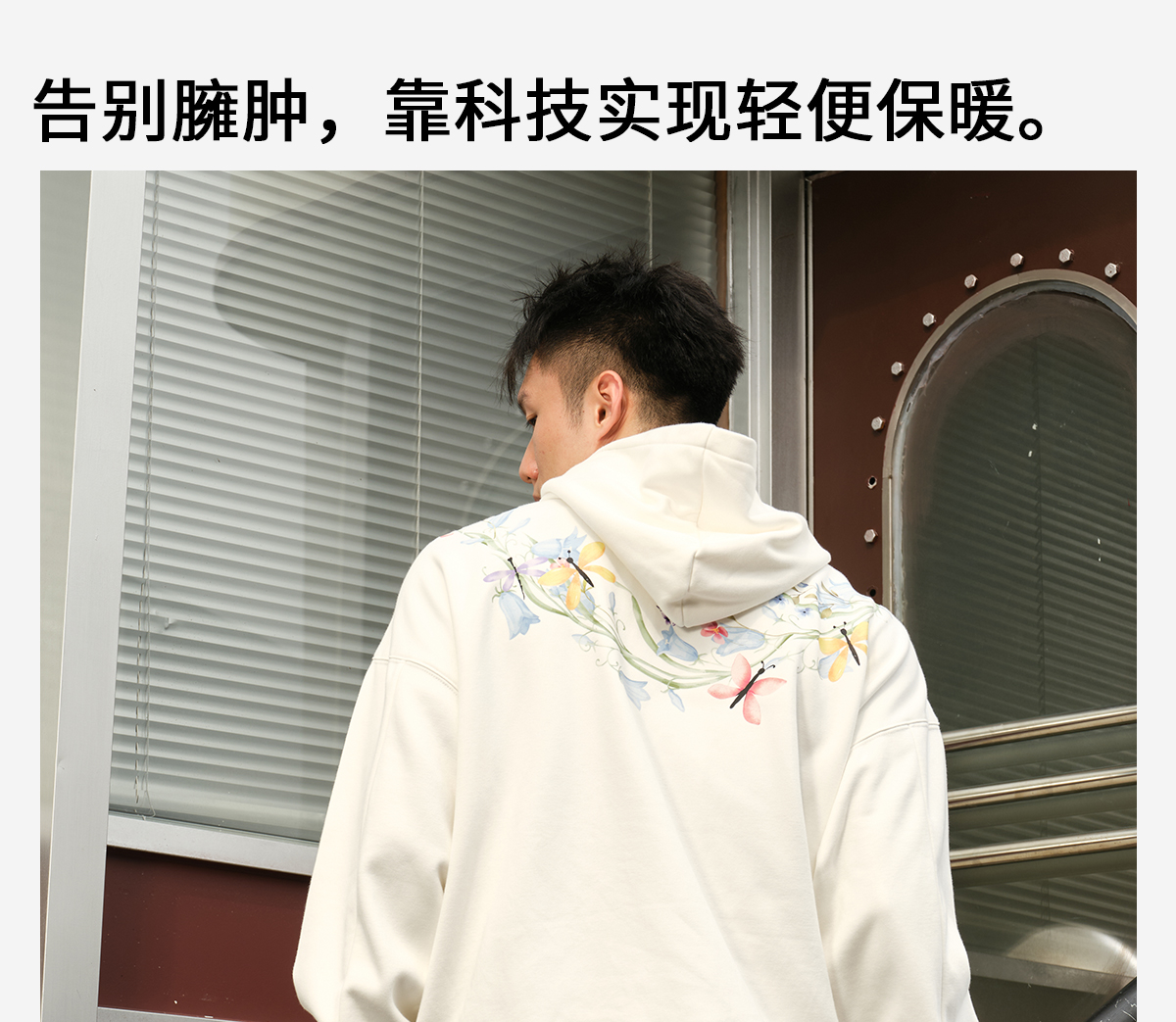 录士LUSHISI盛开连帽卫衣365g重磅抓绒保暖恒温暖皮宽松落肩版型