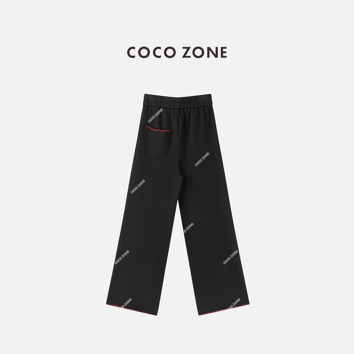 COCO ZONE 100棉时尚松紧腰休闲裤撞色直筒裤CC2C1563