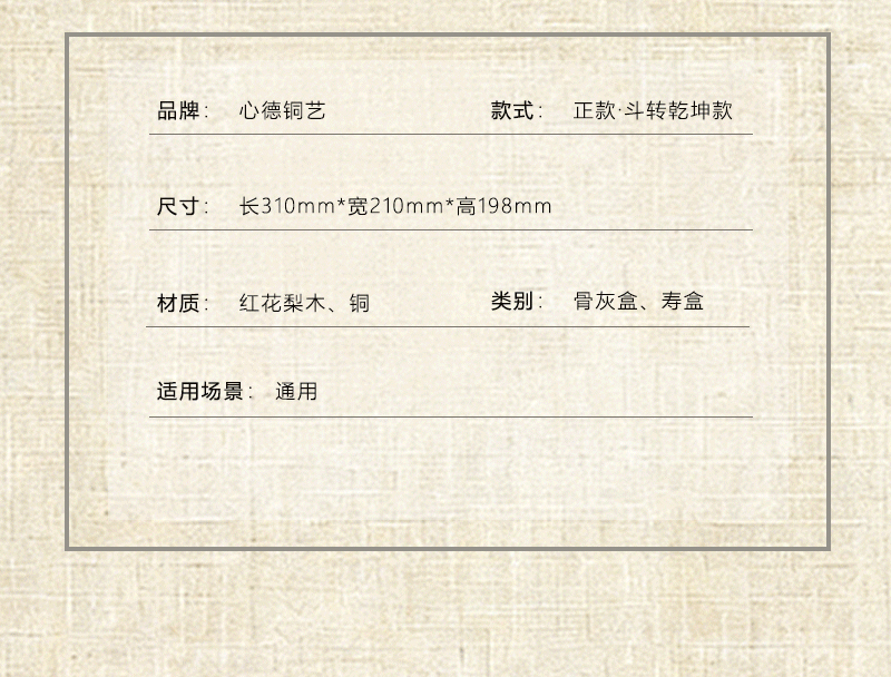 铜制骨灰盒正款·斗转乾坤款红花梨木男女寿盒