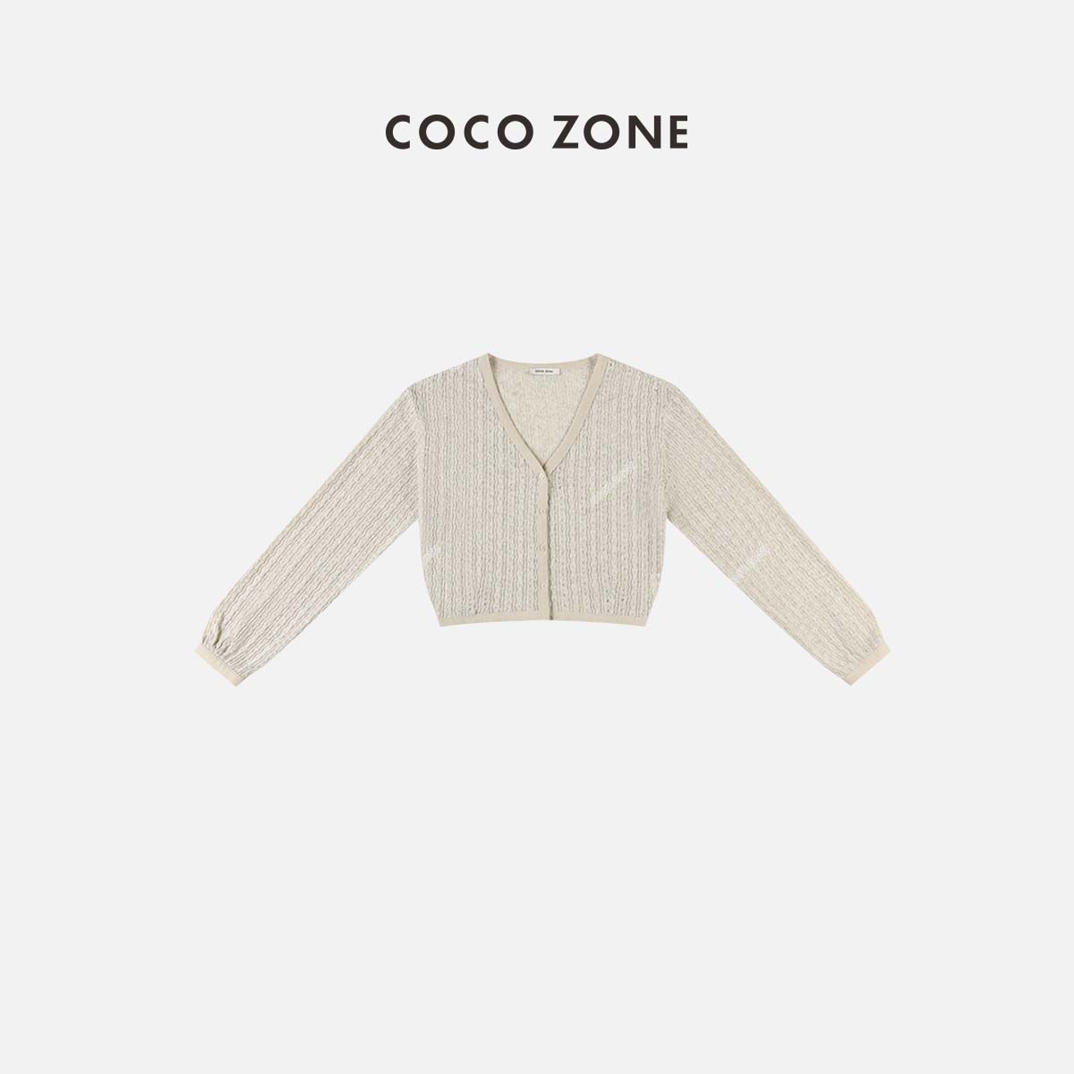 COCO ZONE 通勤风V领镂空面料设计开衫上衣 23C18862