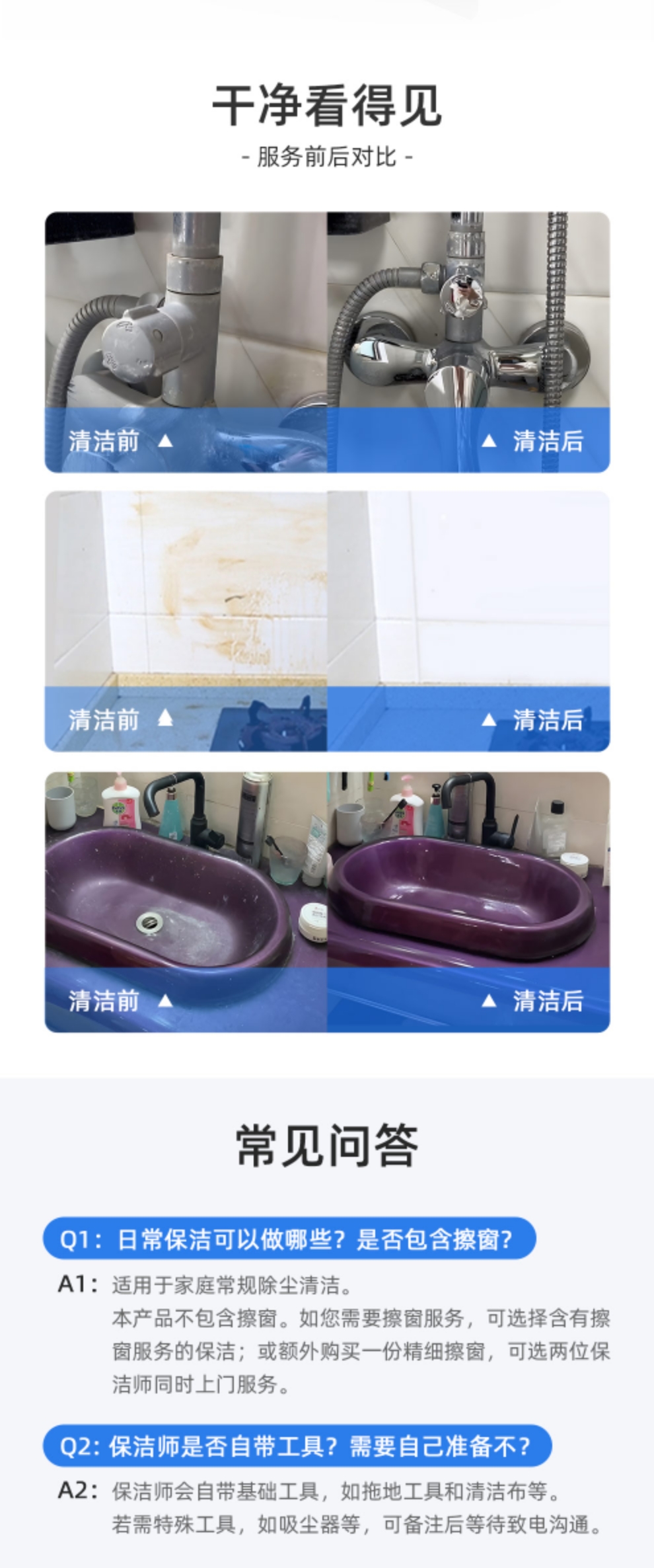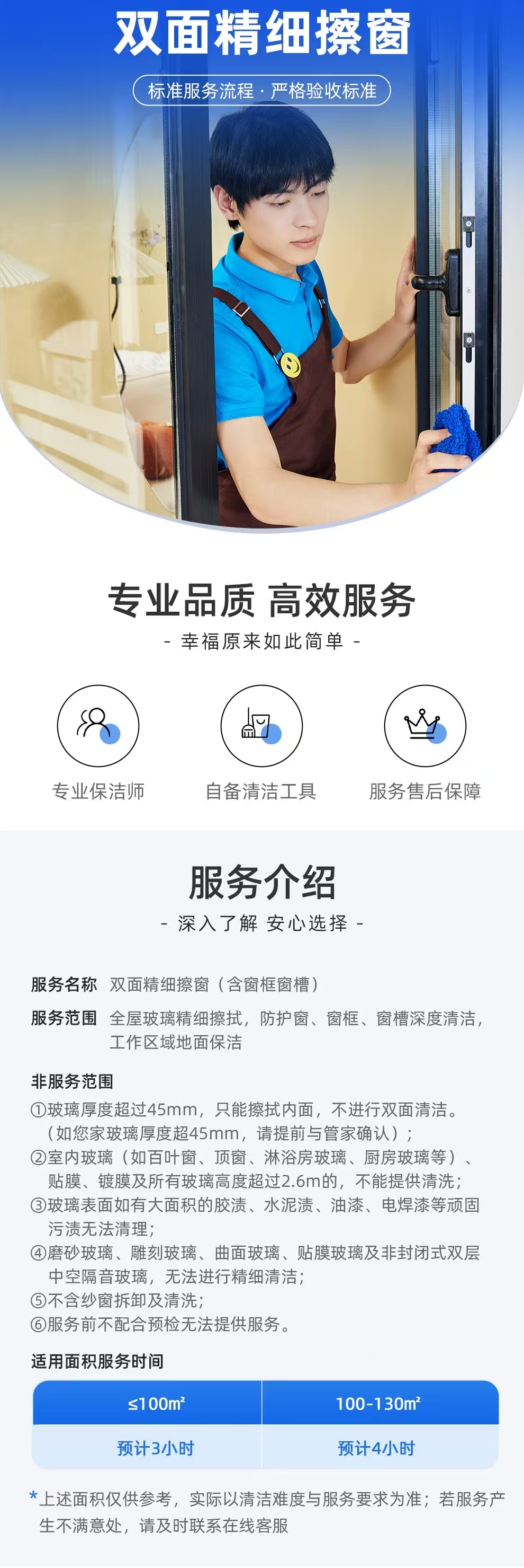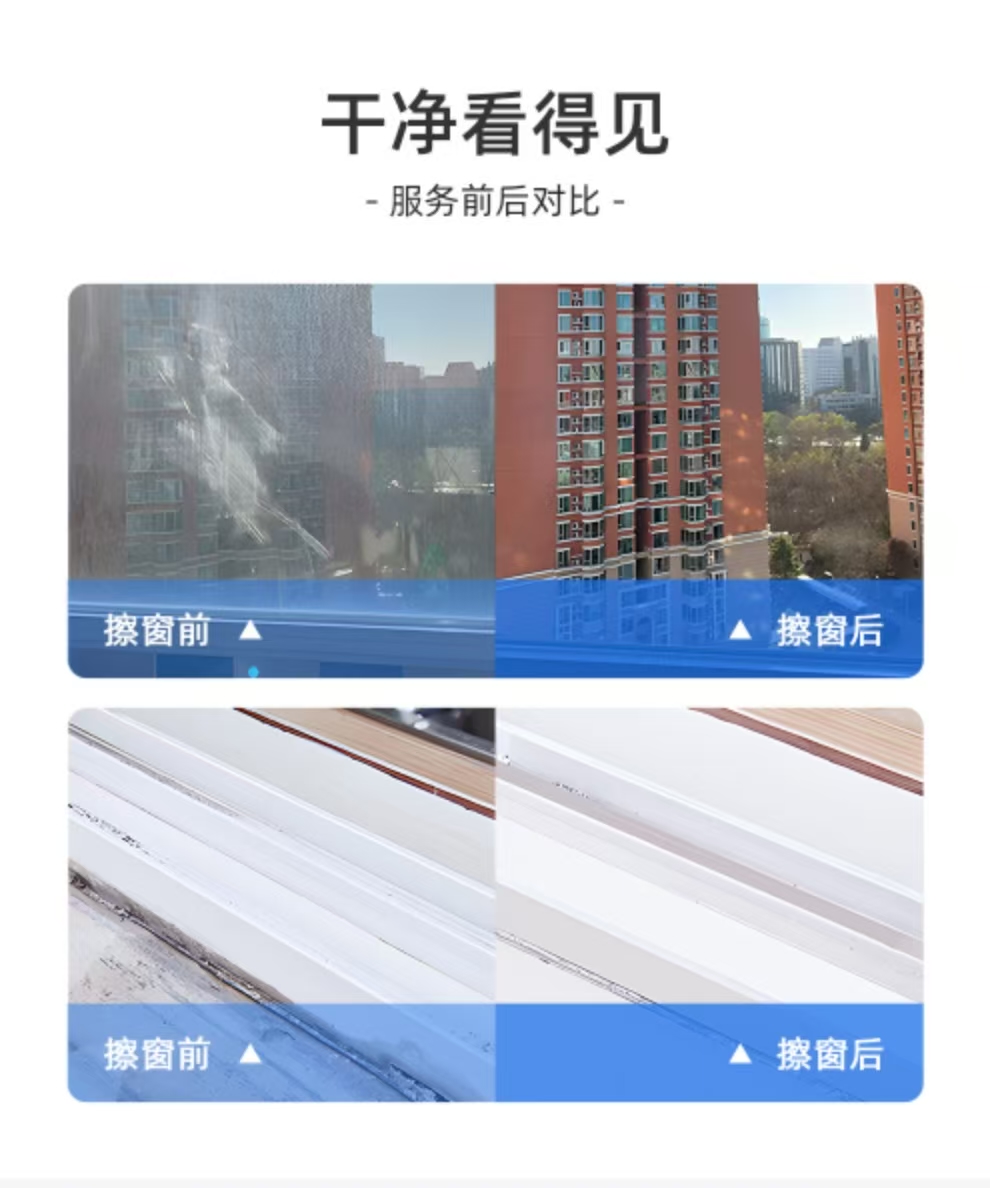 ②如防盗窗在室内,且间距较小(无法放置玻璃擦),会影响服务速度及效果,服务者会在服务过程和您沟通确认