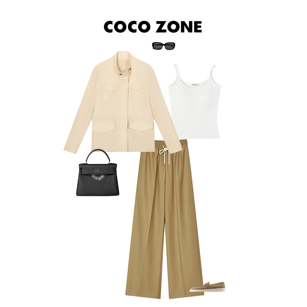 刘一一&COCO ZONE100%亚麻棉长袖飞行服外套立领夹克 23C29518