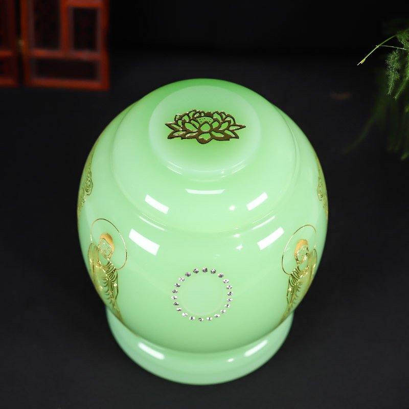 骨灰坛绿琉璃地藏王菩萨心经骨灰桶骨灰坛18*23cm