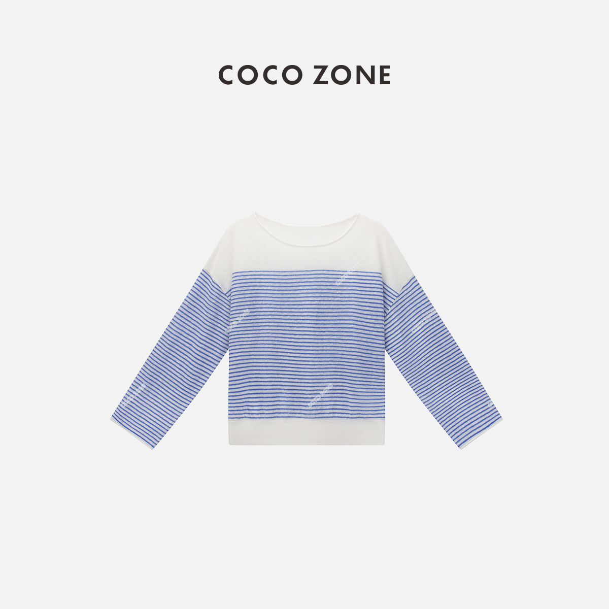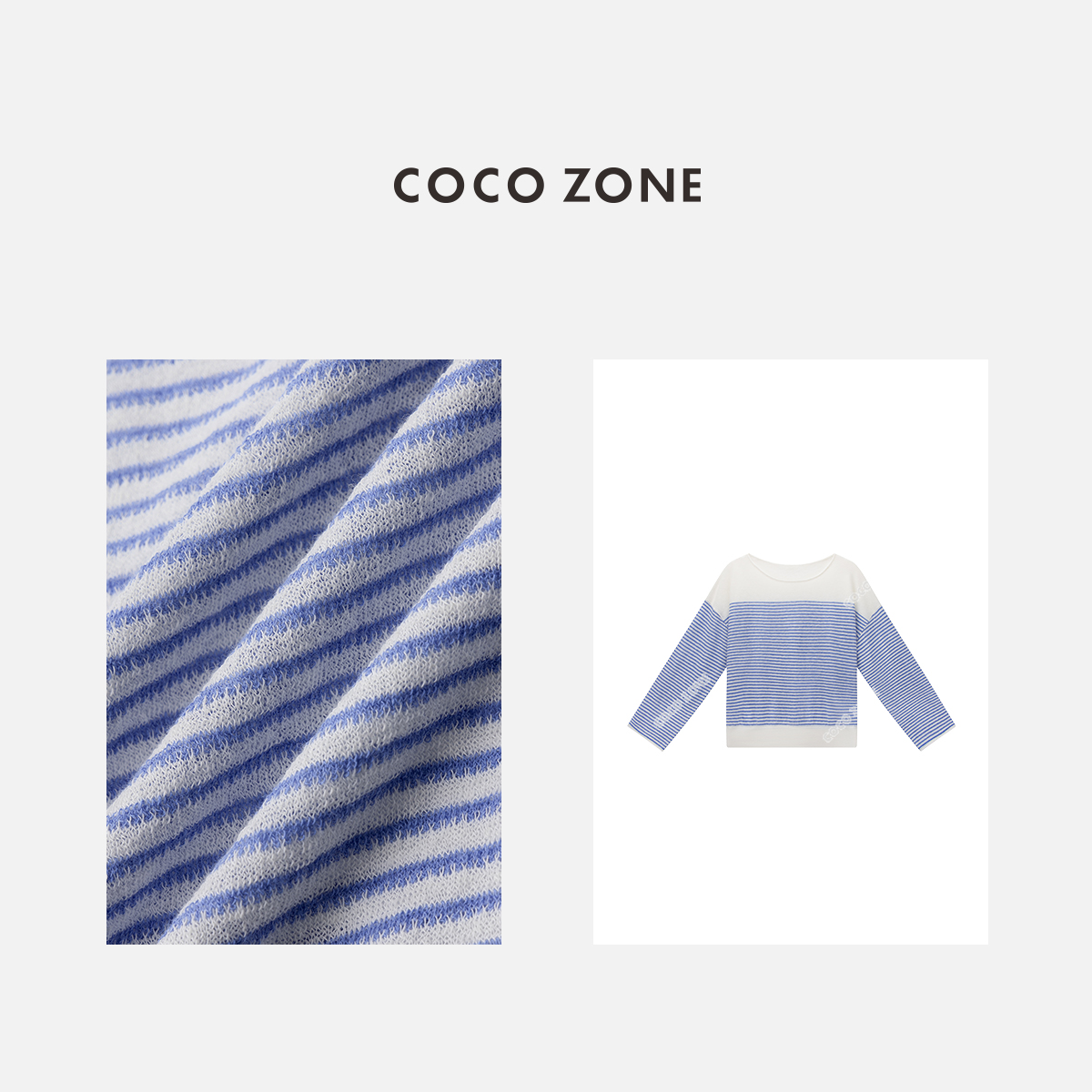 COCO ZONE2024"海洋”条纹撞色长袖针织衫气质百搭圆领上衣CC1B0931