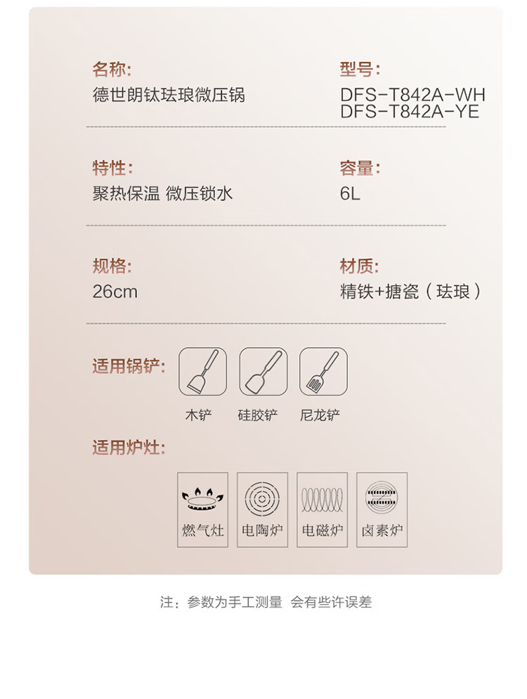 【鼎】德世朗钛珐琅微压营养锅特价黄白颜色随机