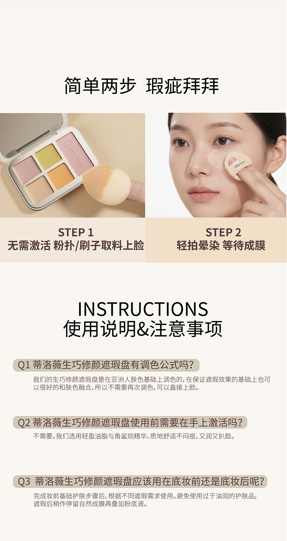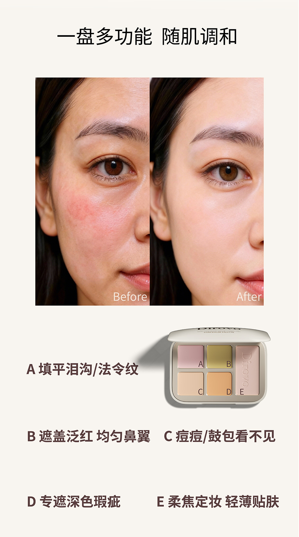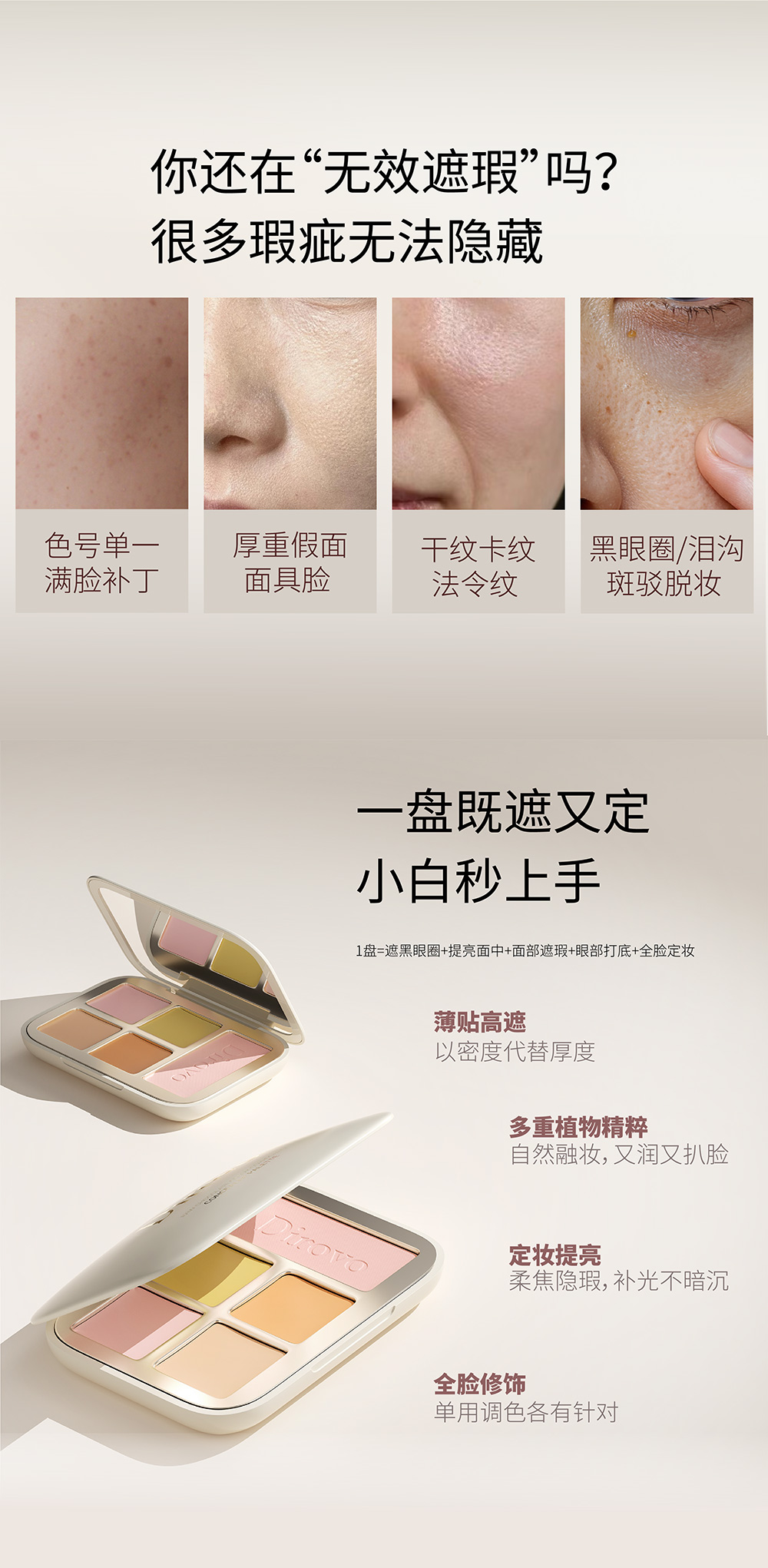 【新品上新】蒂洛薇生巧修颜遮瑕盘裸感高遮瑕不易卡纹四色多功能