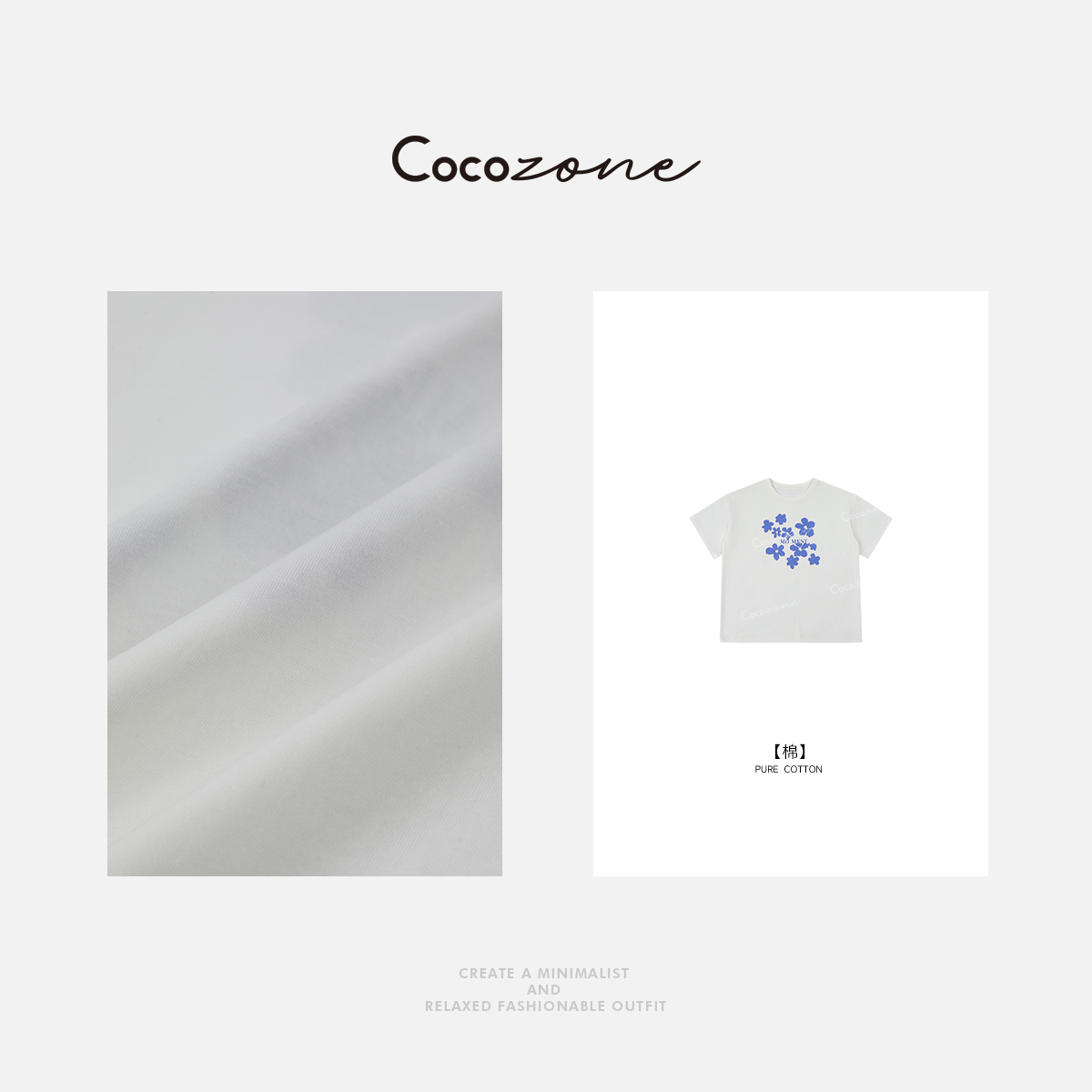 COCO ZONE 刘一一 2025新款小众字母印花圆领短袖T恤CD2A0572