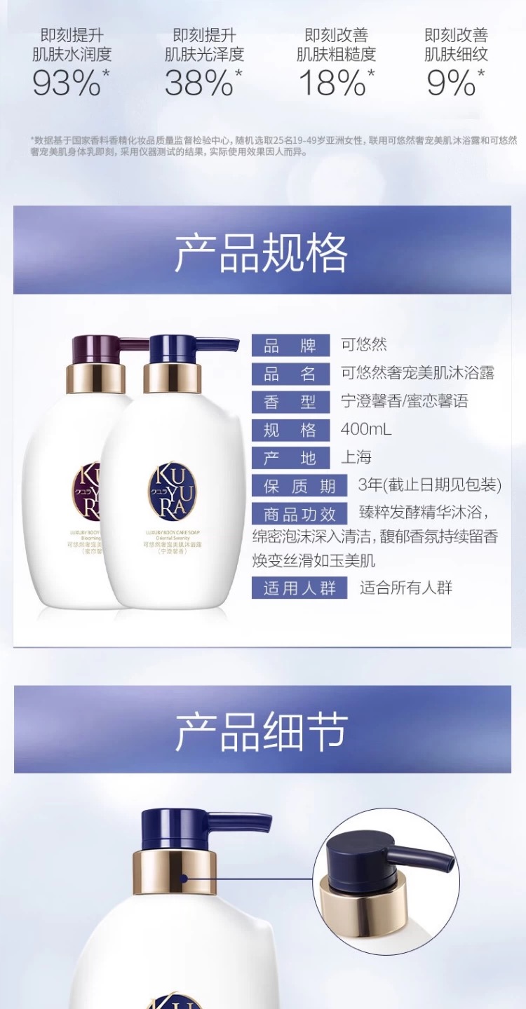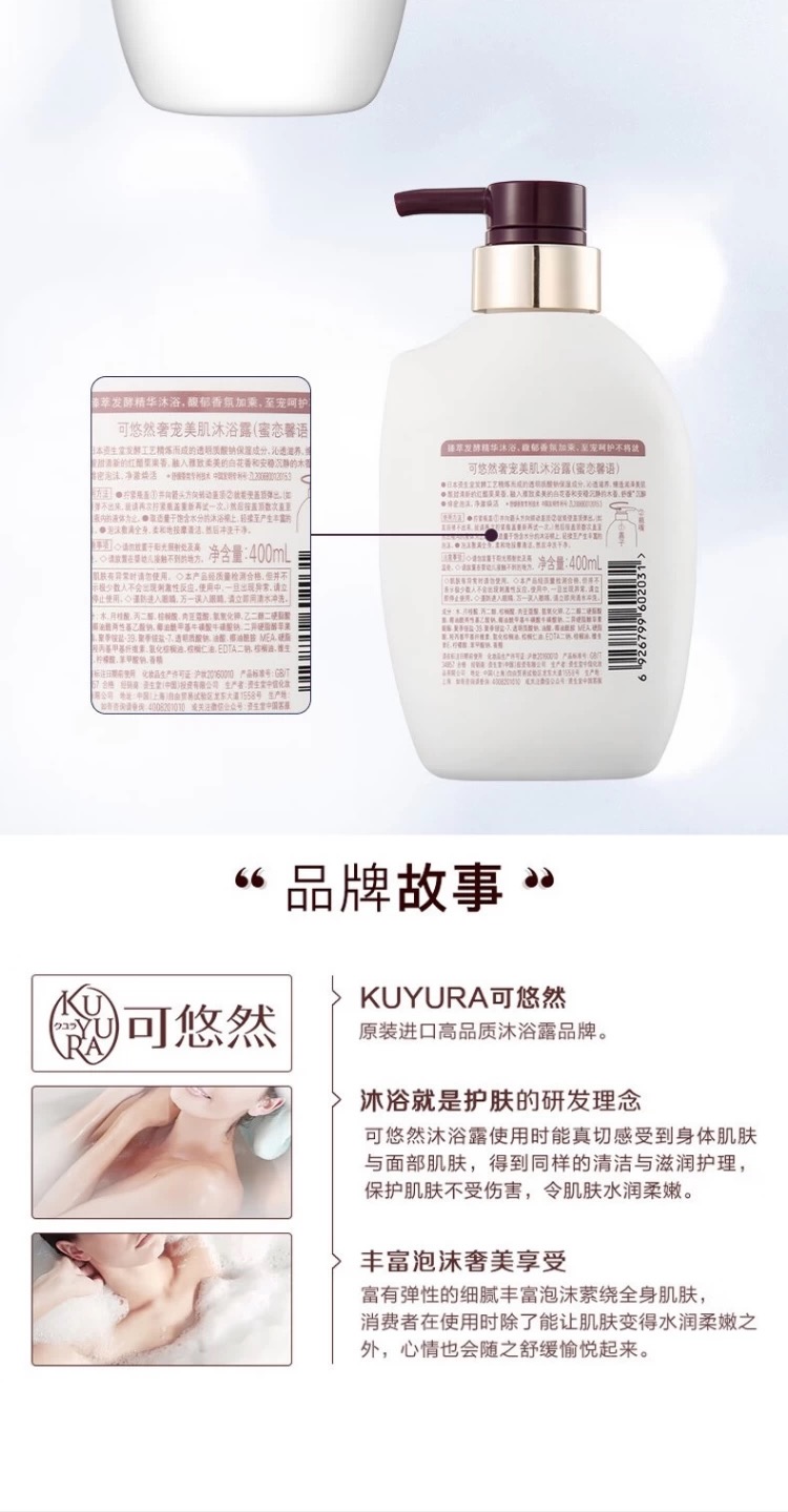 可悠然奢宠美肌沐浴露持久留香易冲洗保湿修护沐浴露