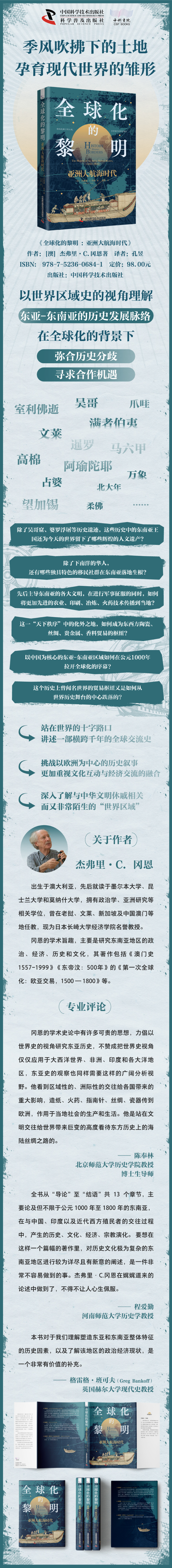 本书内容涉及亚洲内部的白银和陶瓷贸易、中国的大帆船贸易、欧洲贸易公司的兴起、包括日本人町在内历史悠久的东南亚侨民社区,以及多种类型的技术交流。
