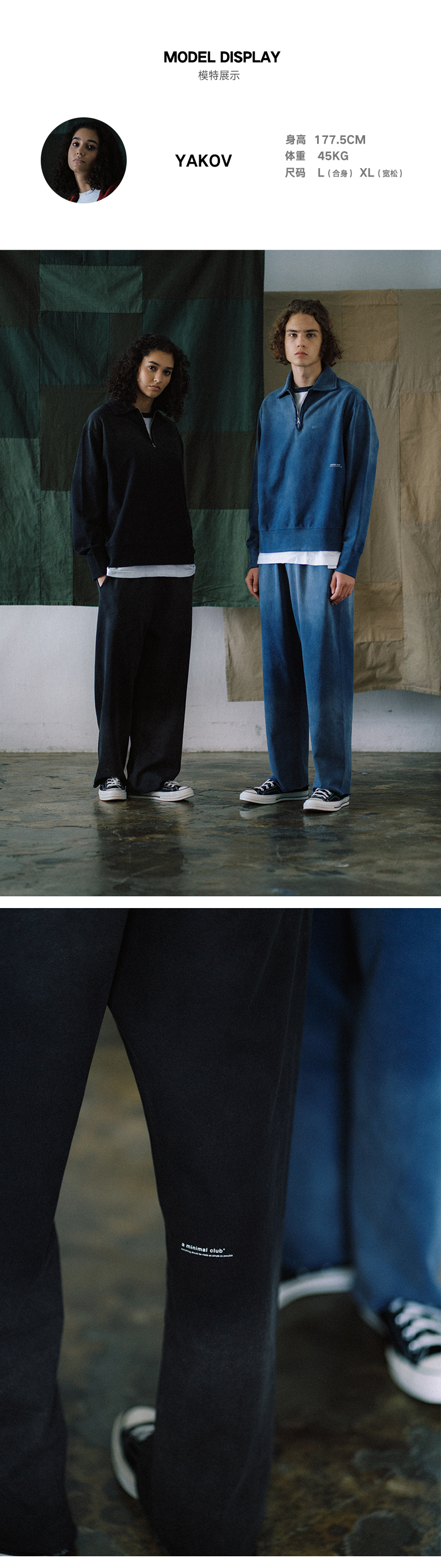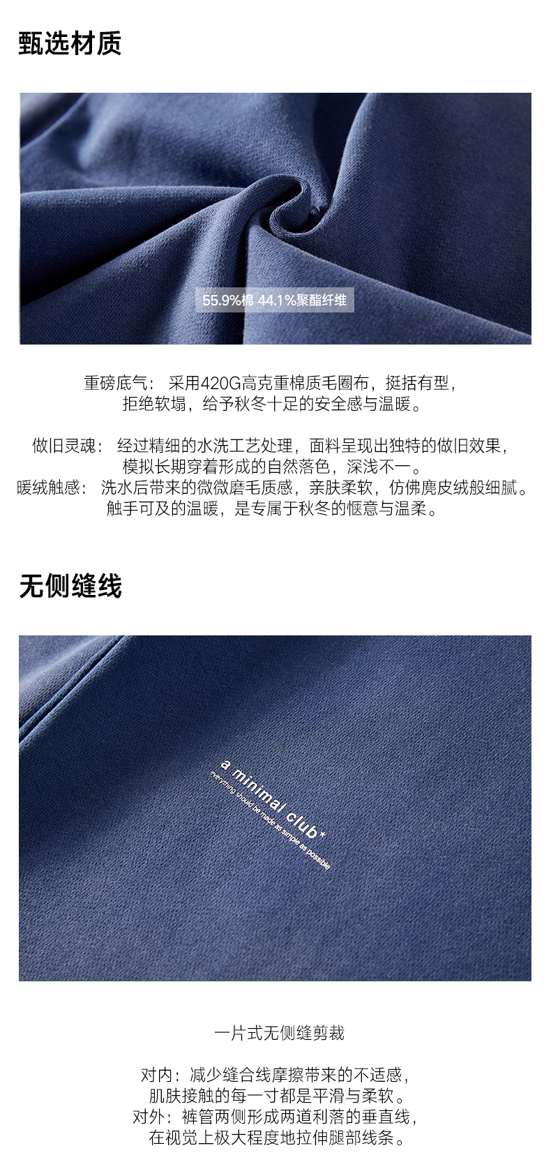 a minimal club渐变水洗420克重直筒卫裤无侧缝抽绳裤腰AM59SP03