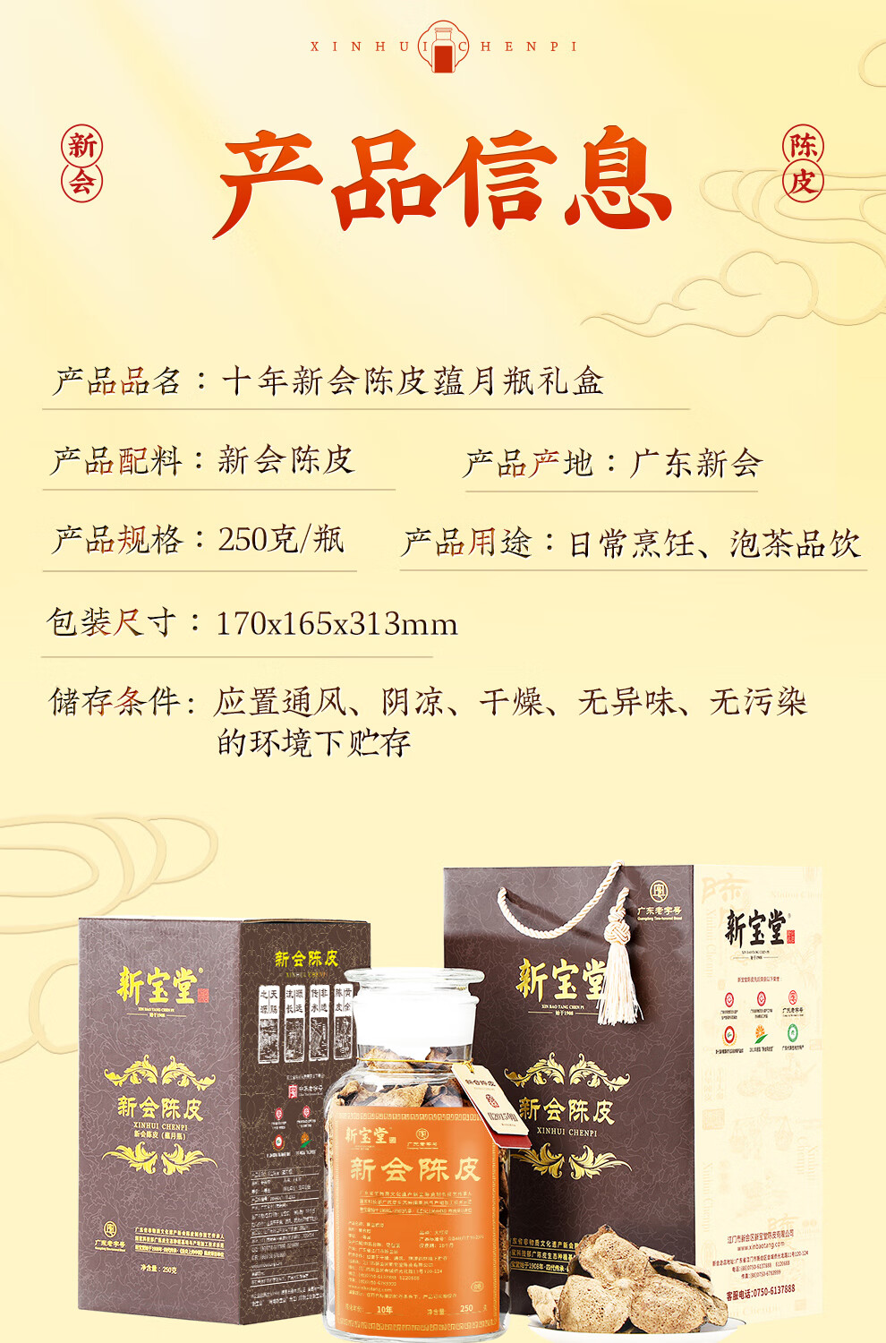 新宝堂|10 年陈皮蕴月瓶(250 克)