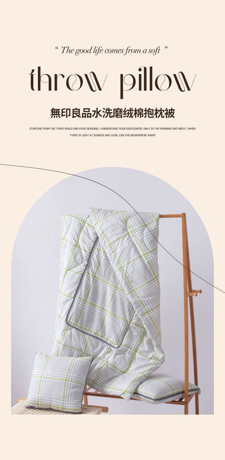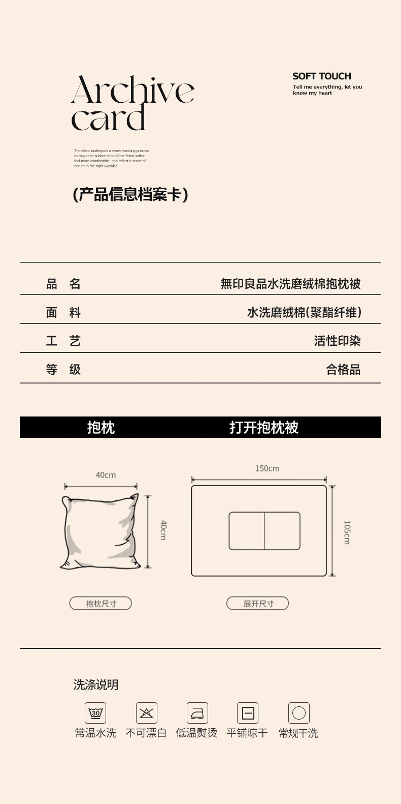 無印良品 水洗磨绒棉抱枕被MJ-XJ25-02折叠:40*40cm 展开:105*150cm