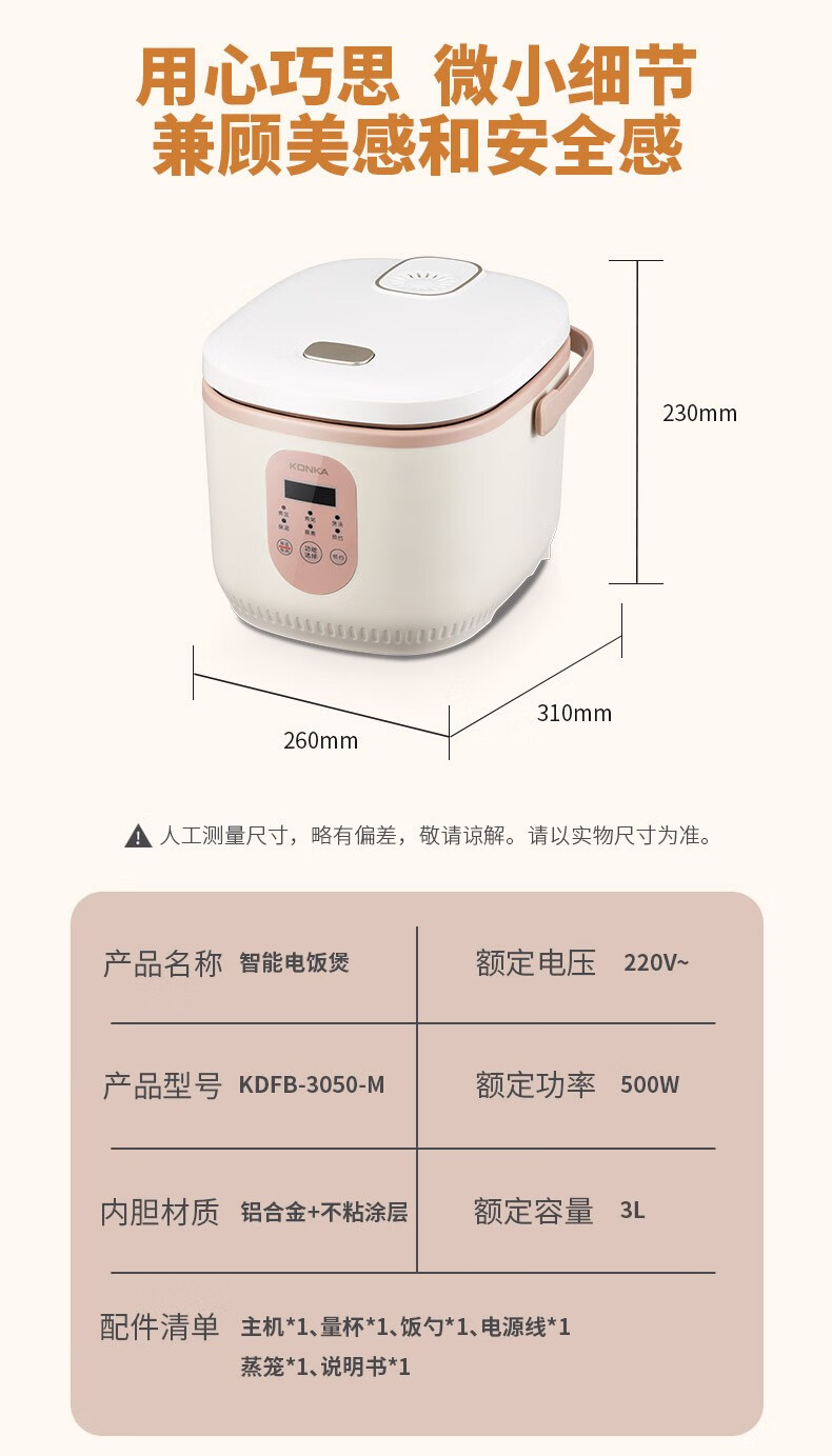 康佳(KONKA)智能电饭煲2-5人煮粥柴火饭电饭锅 KDFB-3050-M电饭煲 3L