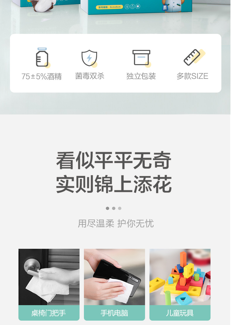 可孚酒精棉片医用消毒单独小包装手机湿巾一次性耳洞75度100片