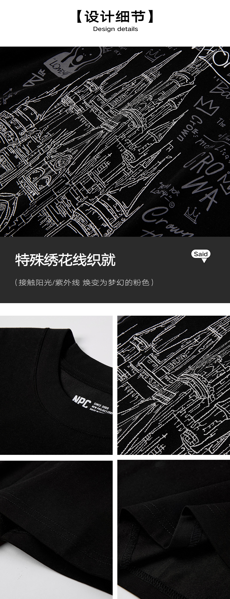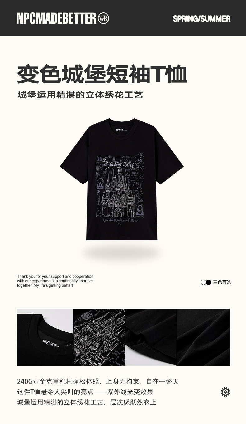 NPC潮牌夏短袖圆领索罗娜T恤时尚夏季紫外线印花潮流双色NP56TE91