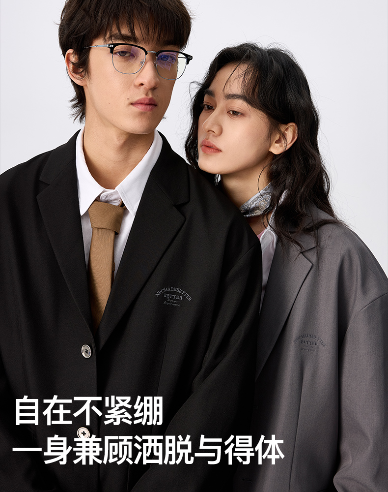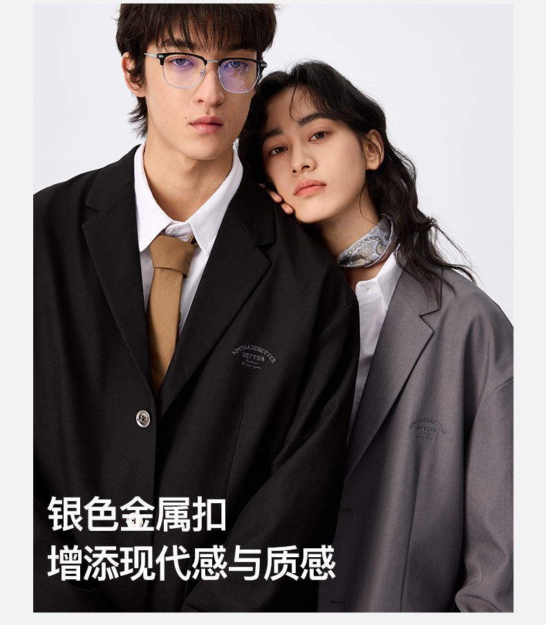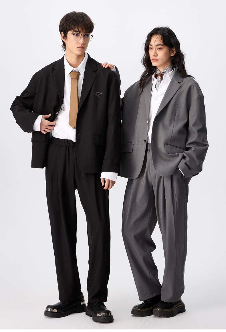 NPC潮牌老钱风刺绣落肩廓形西服西裤套装男随性金属扣NP4CJR08