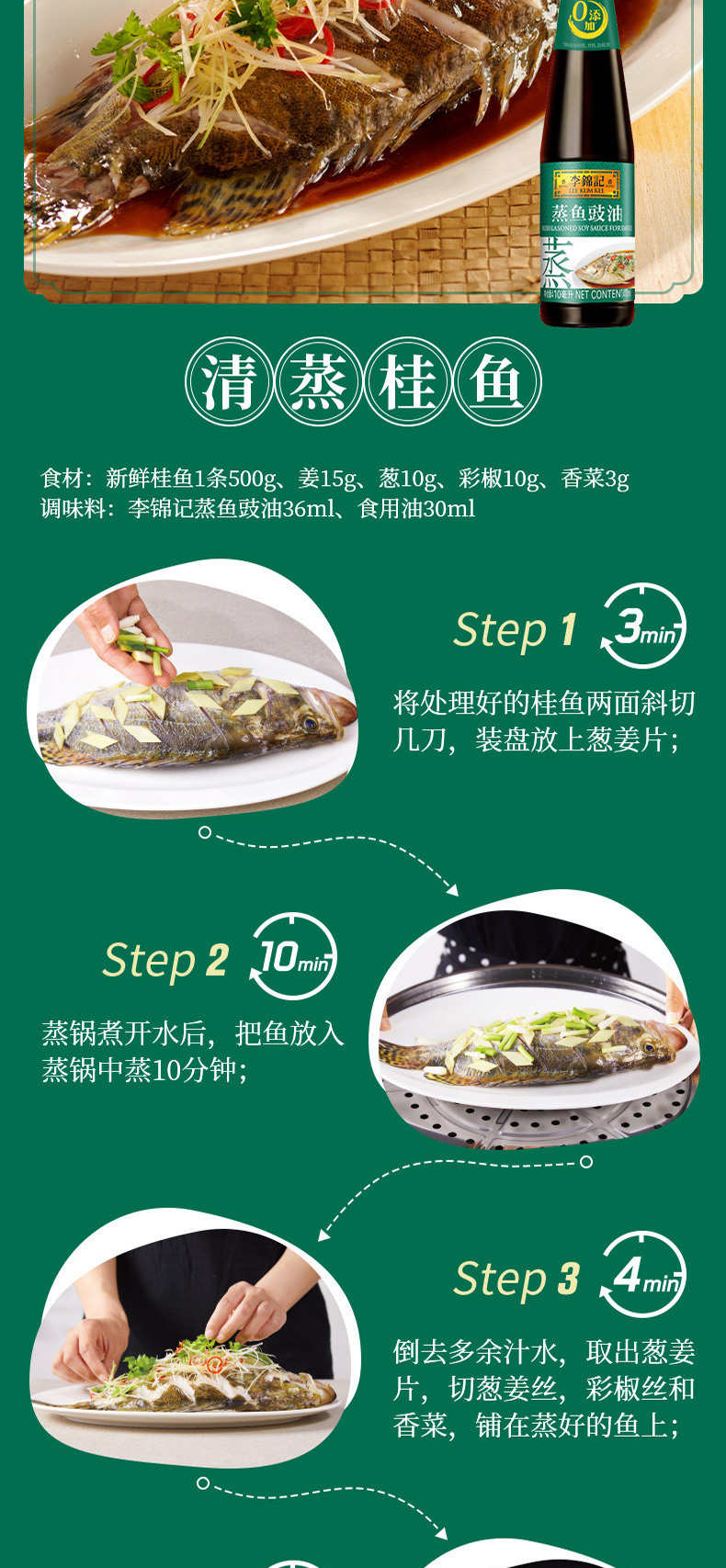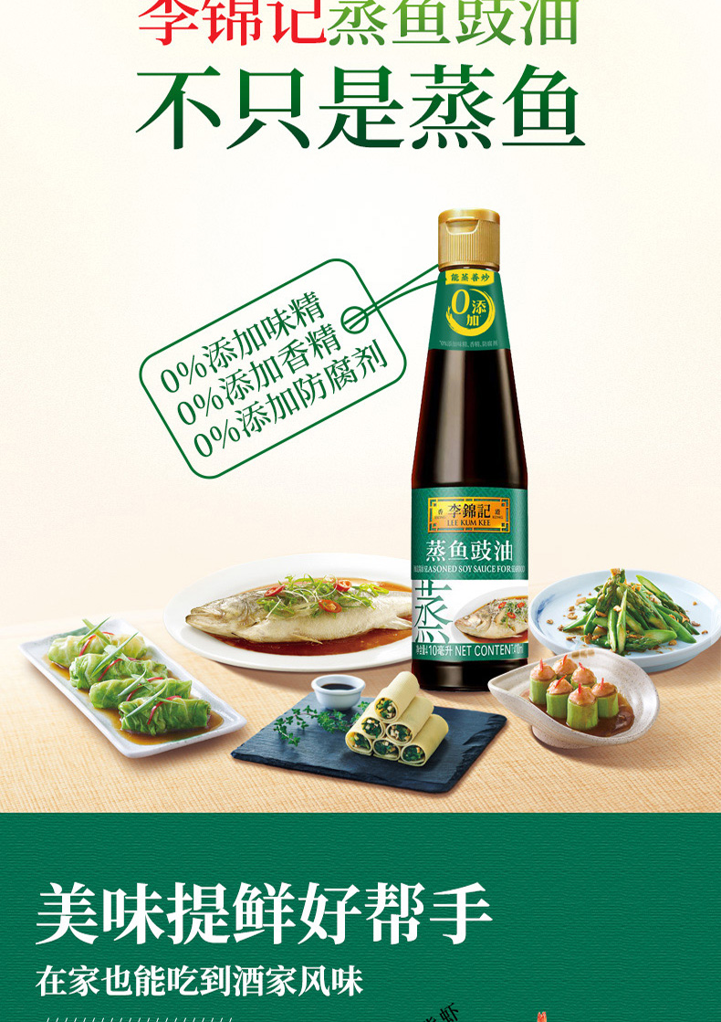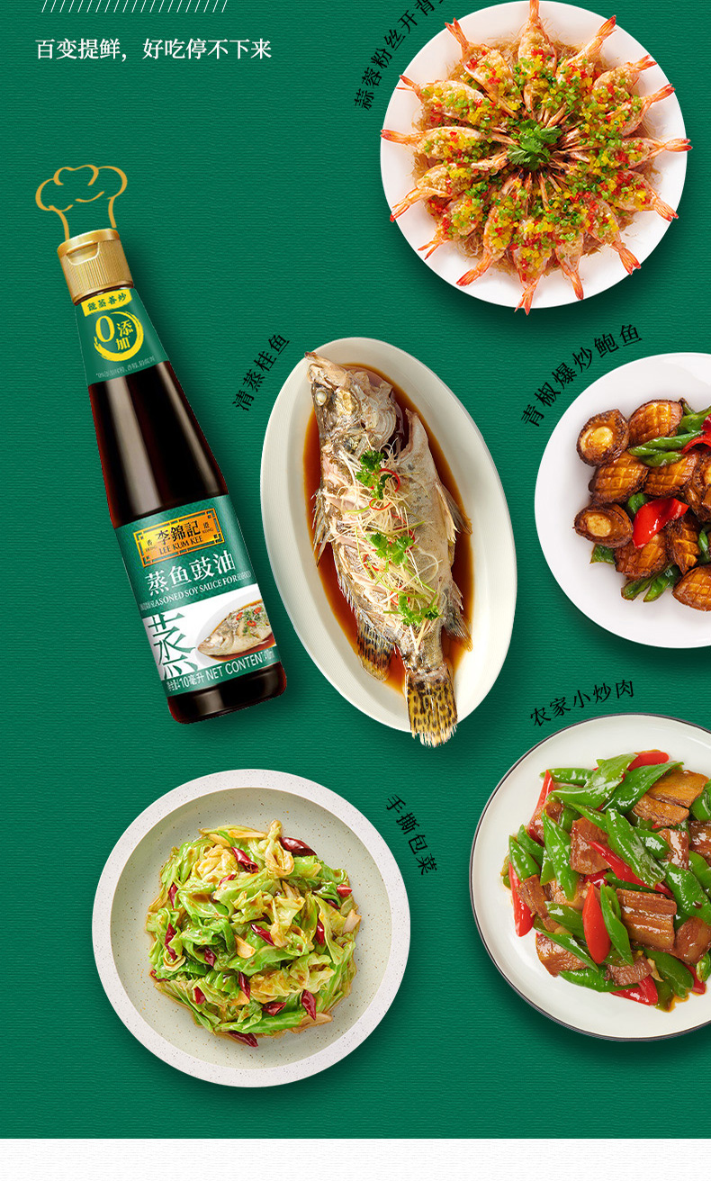李锦记蒸鱼豉油410ml瓶0添加调料清蒸海鲜凉拌家用炒菜调味品生抽