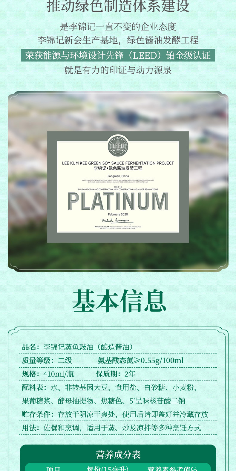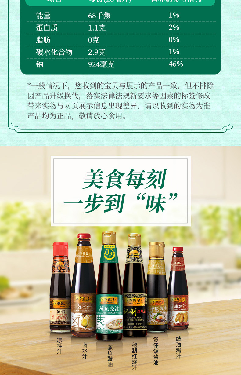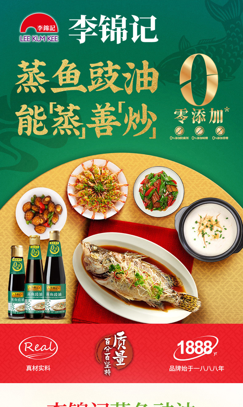 李锦记蒸鱼豉油410ml瓶0添加调料清蒸海鲜凉拌家用炒菜调味品生抽