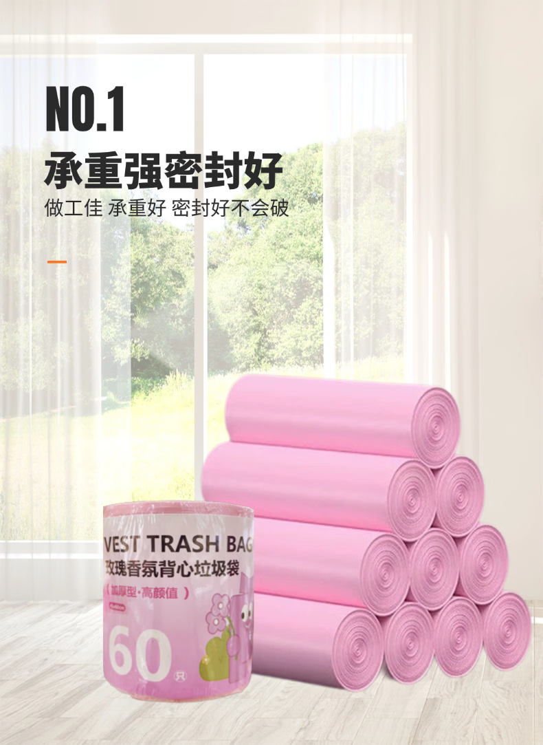 靛美玫瑰香氛加厚背心垃圾袋60只【21003212】