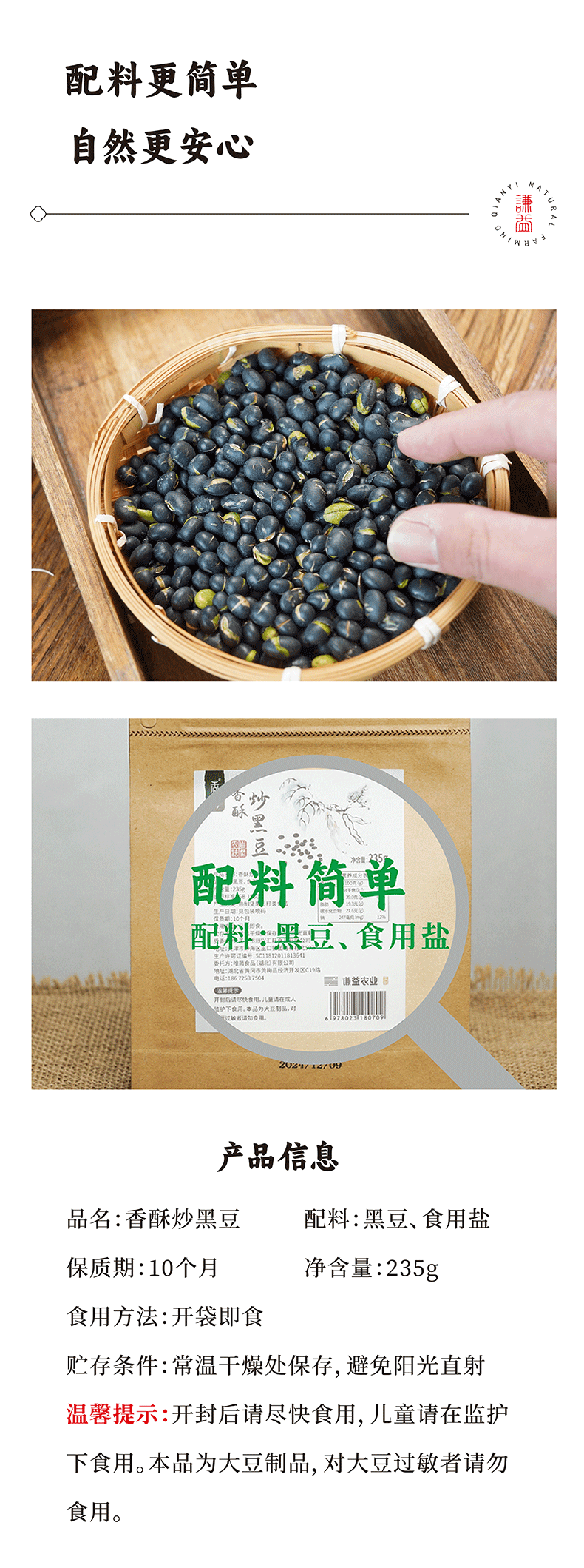谦益香酥炒黑豆235g 生态有机黑豆 无油干炒 原味豆香 营养丰富 高蛋白 居家休闲 上班补充能量优选