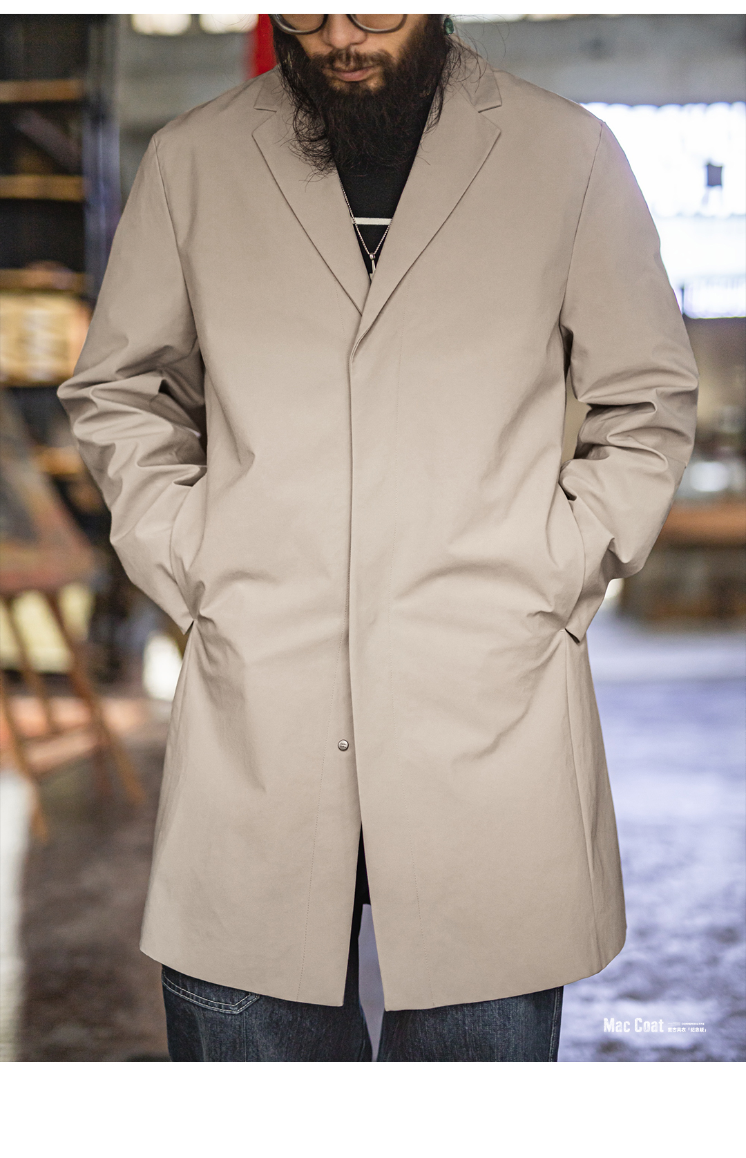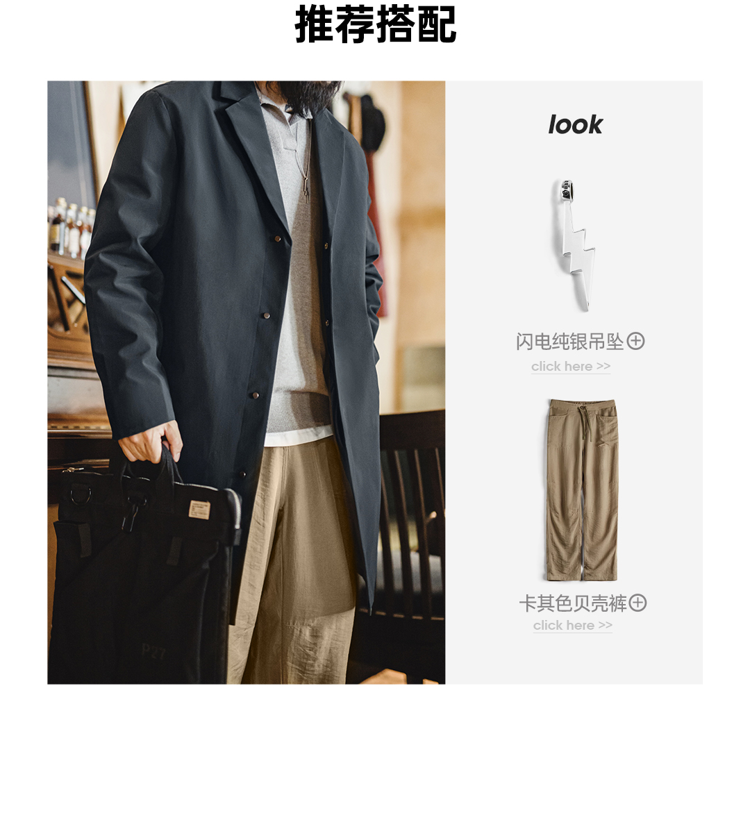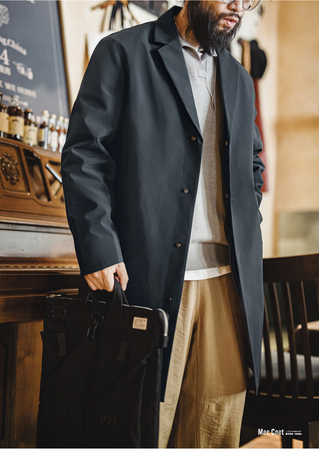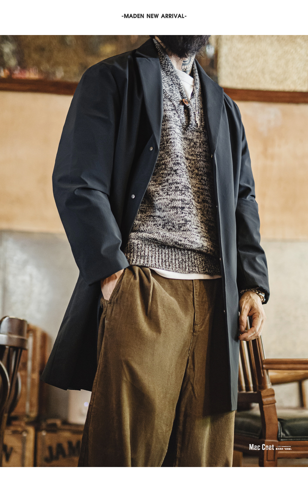 马登工装美式复古薄款通勤风衣英伦中长款蓝色翻领大衣外套男春季