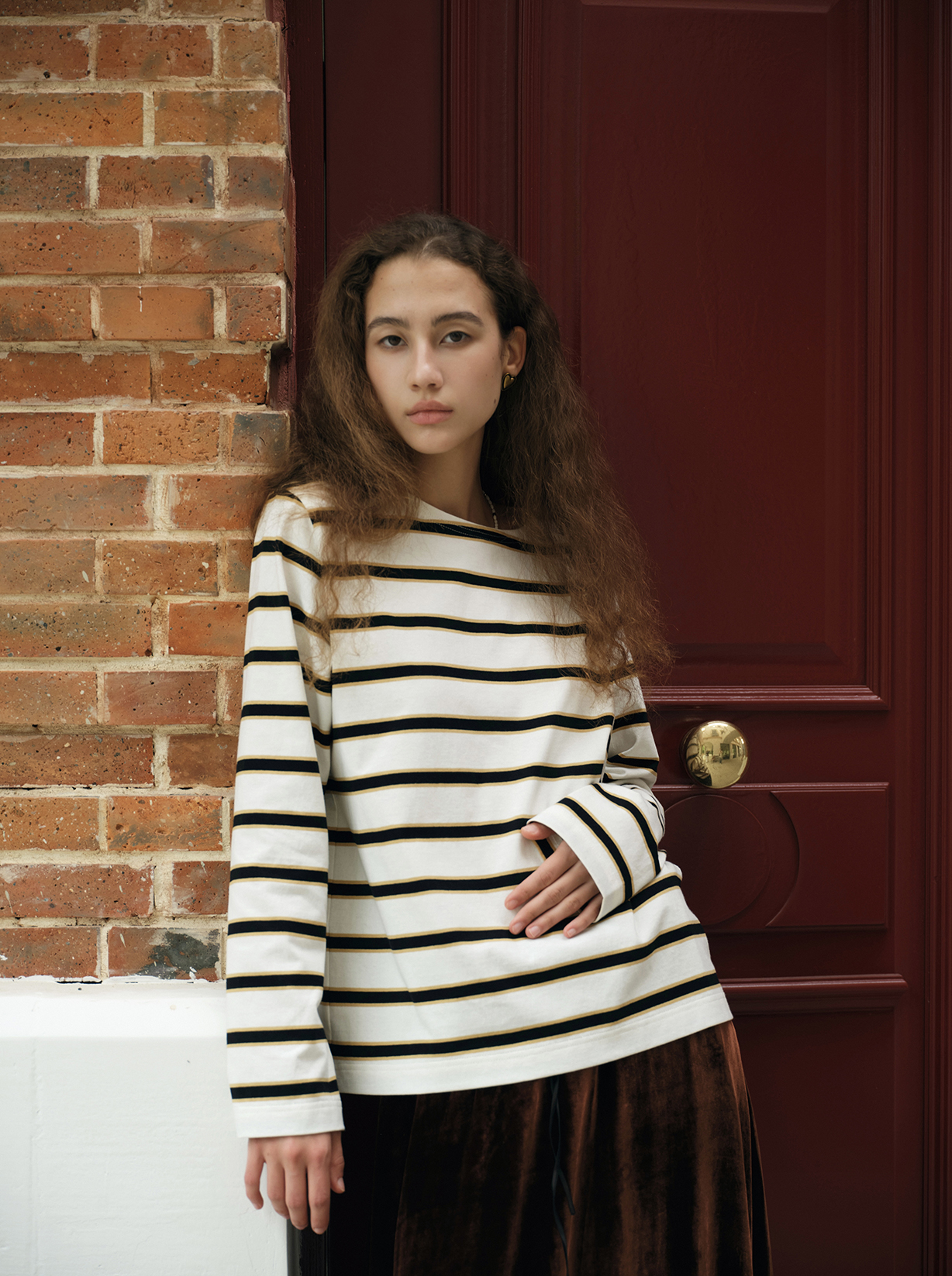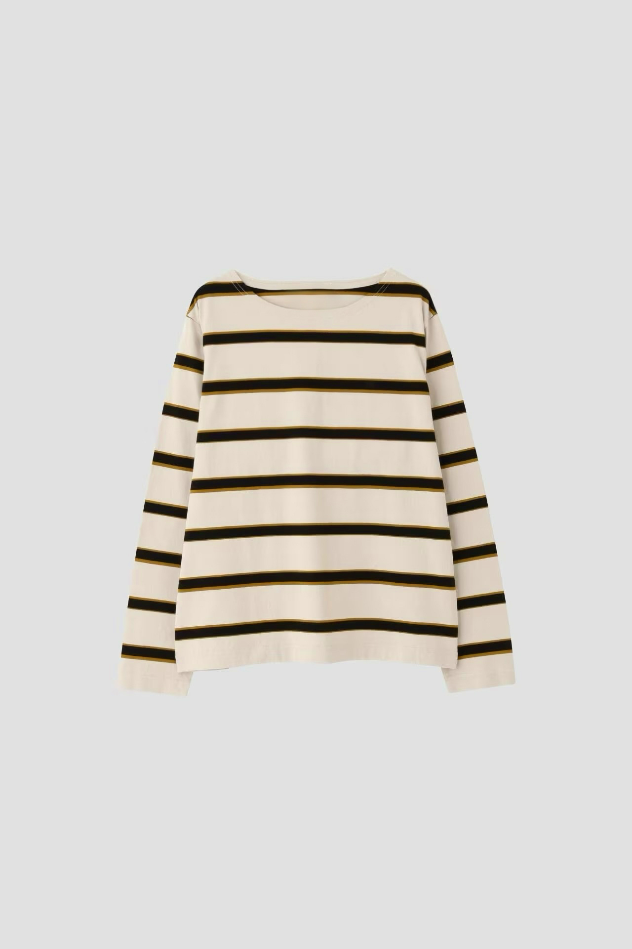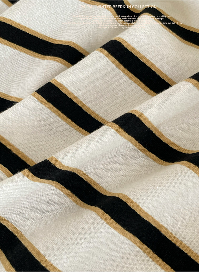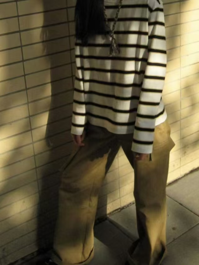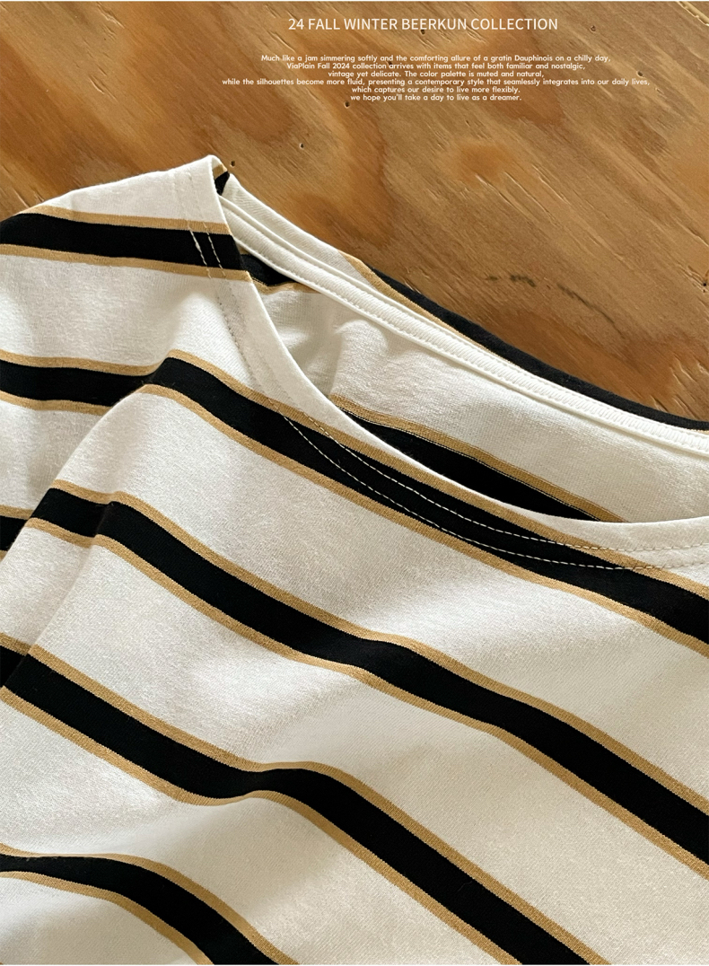 [特价]英式MHL宽松长袖T恤 黄白条纹t恤 纯棉t