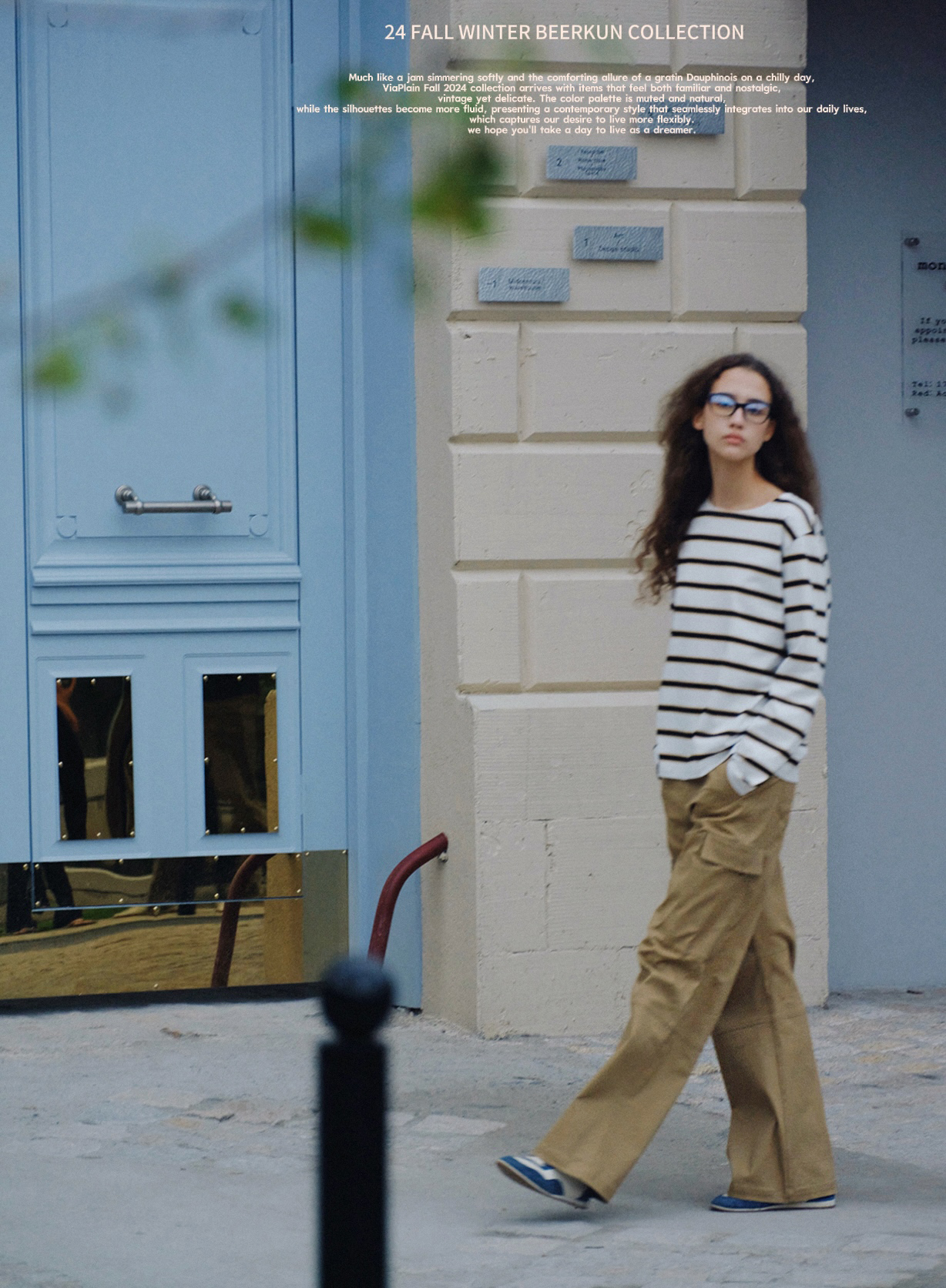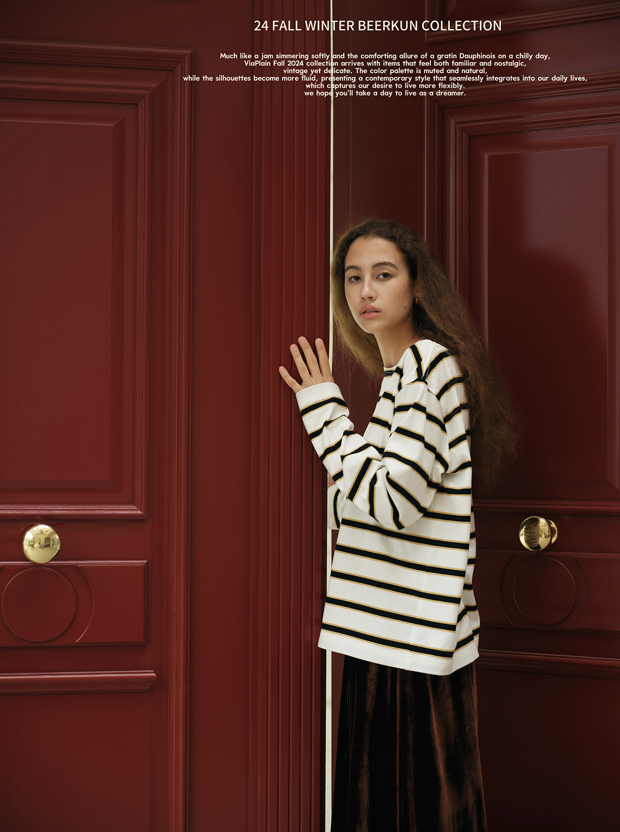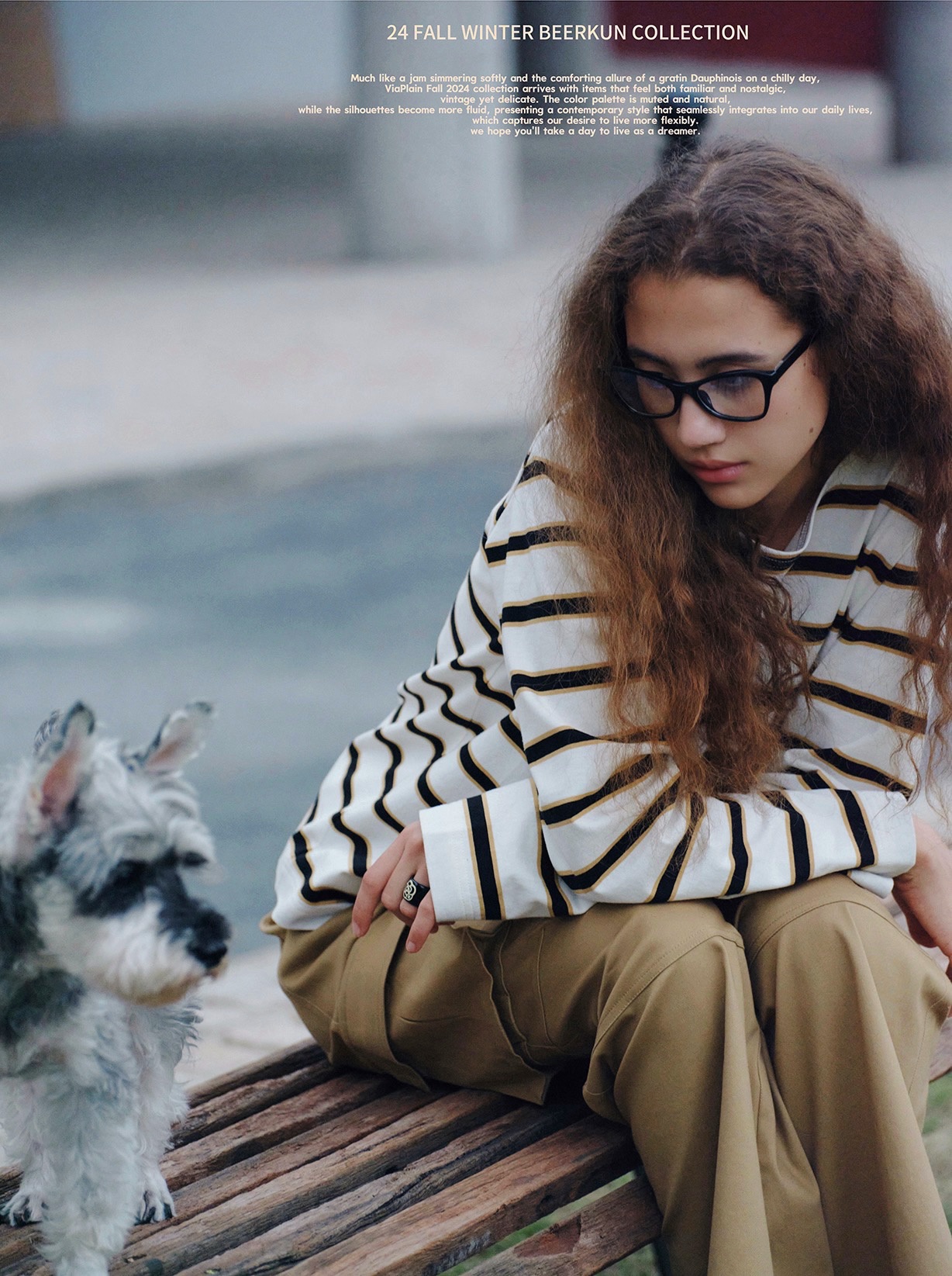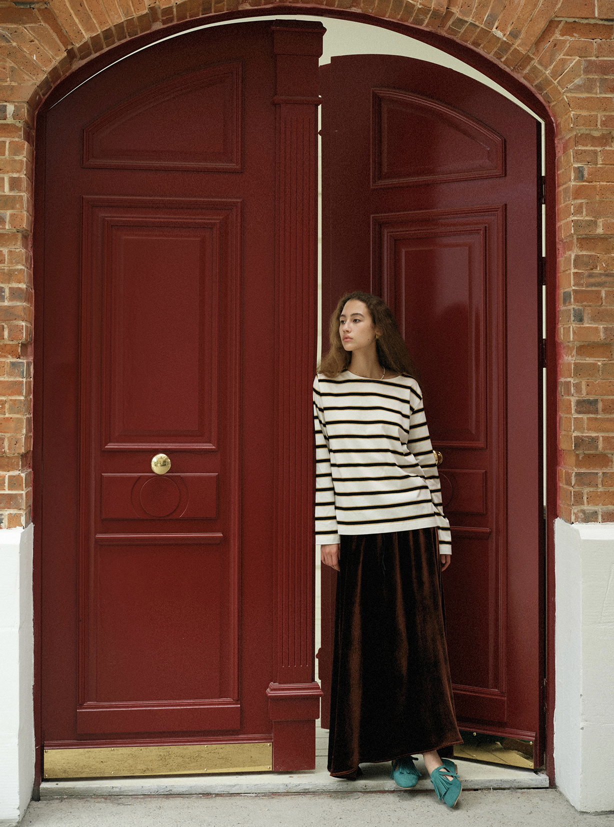 [特价]英式MHL宽松长袖T恤 黄白条纹t恤 纯棉t