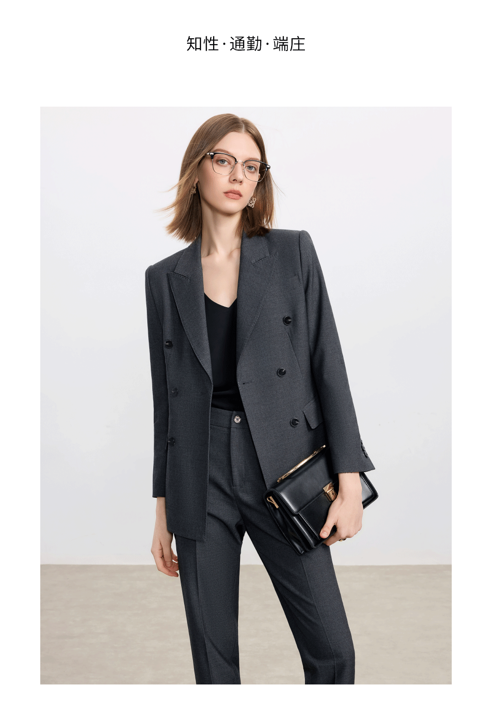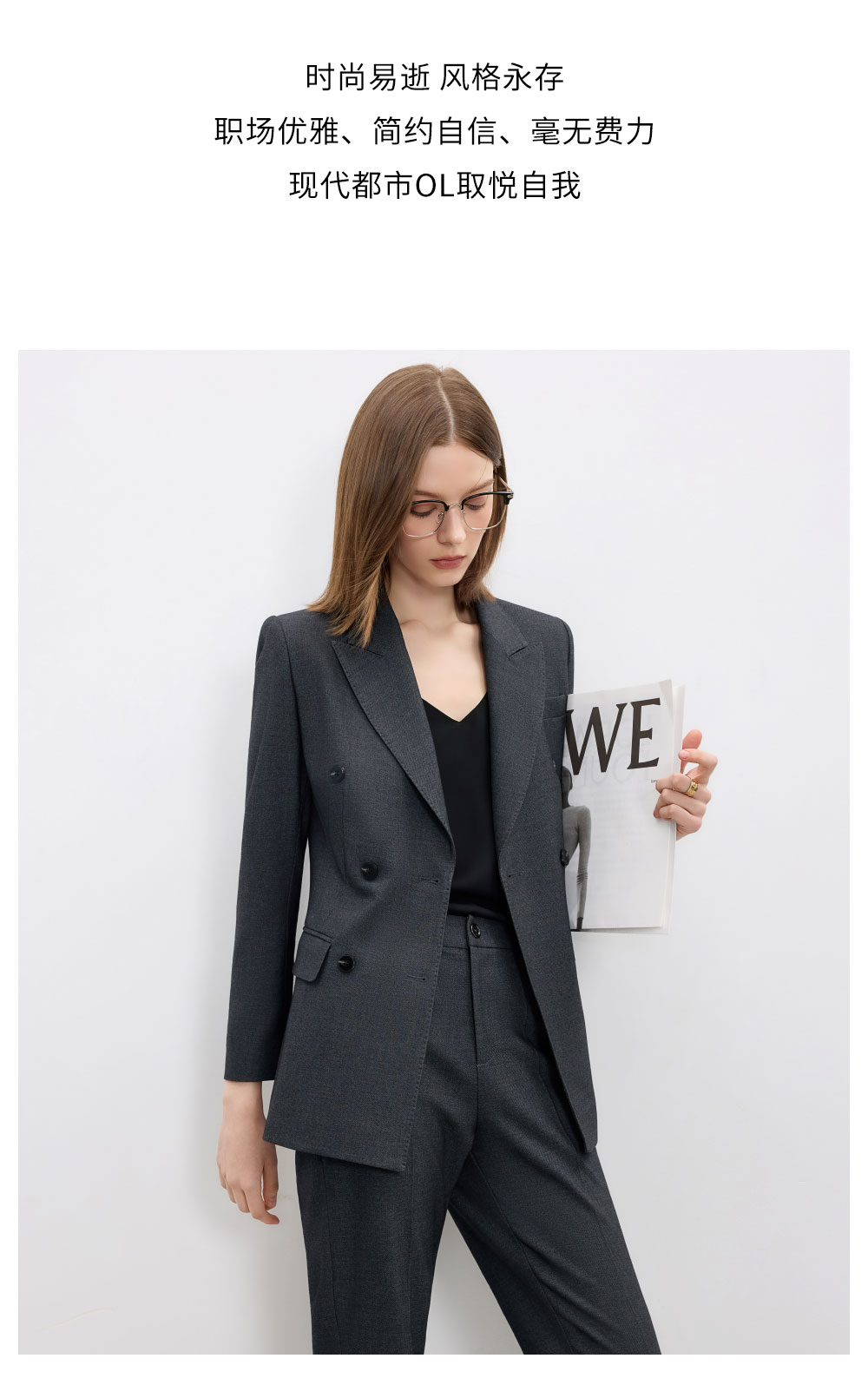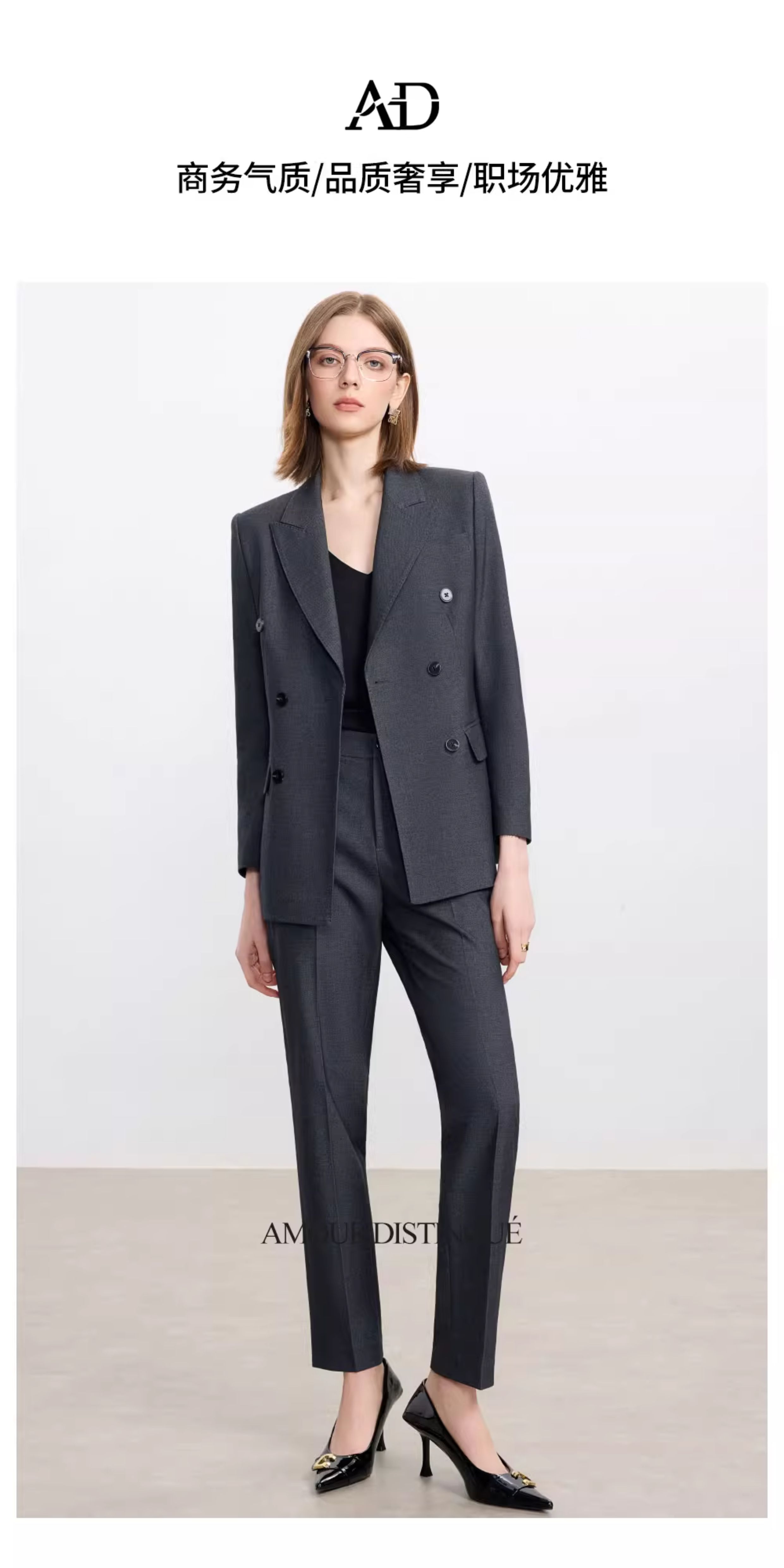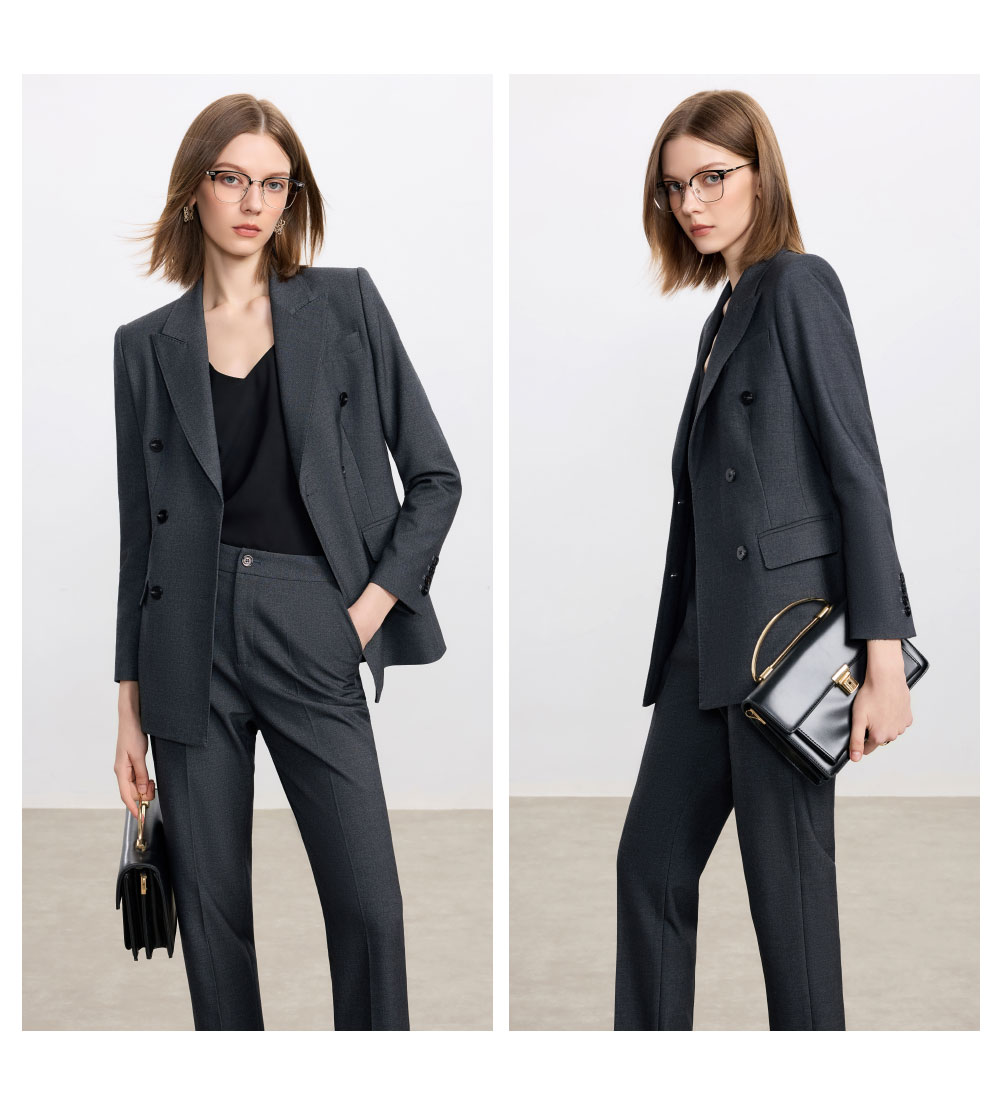 AD羊毛灰色西装套装女2025新款高级感职业装正装西服裤子两件套