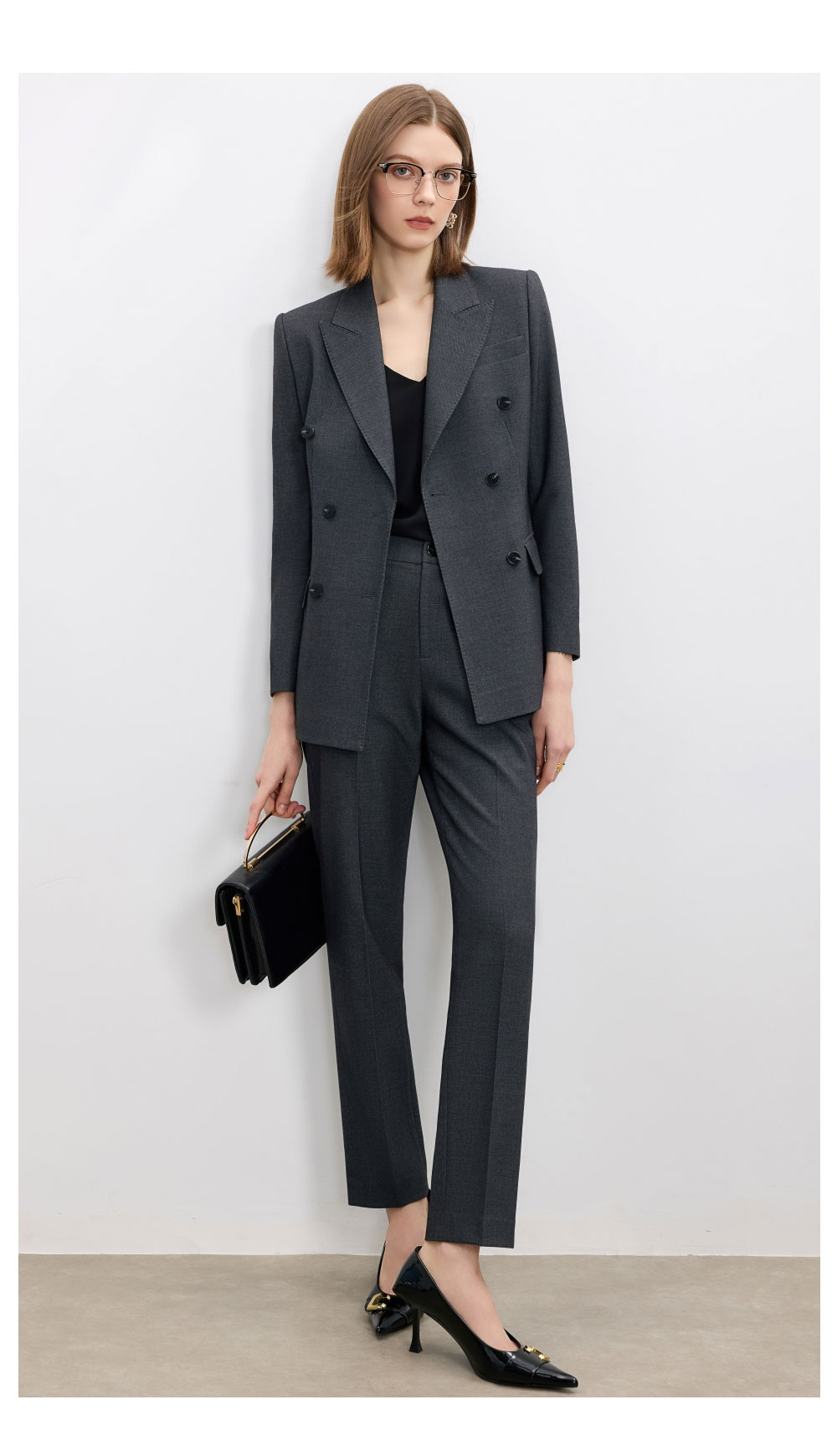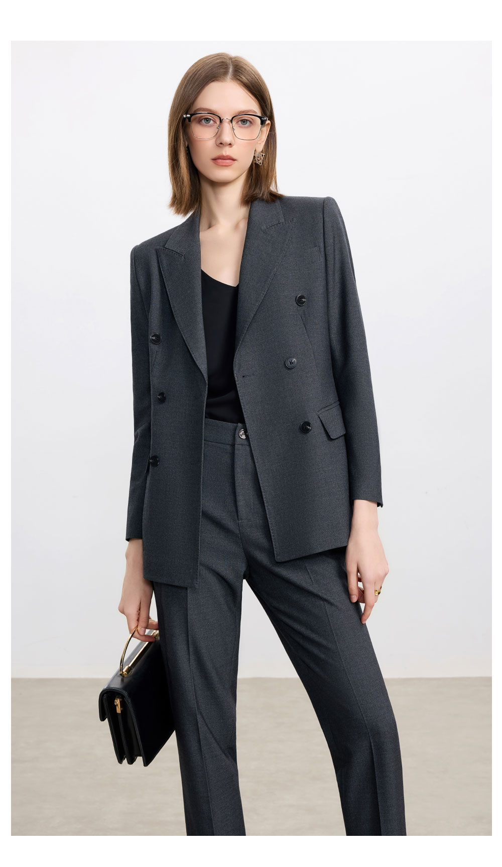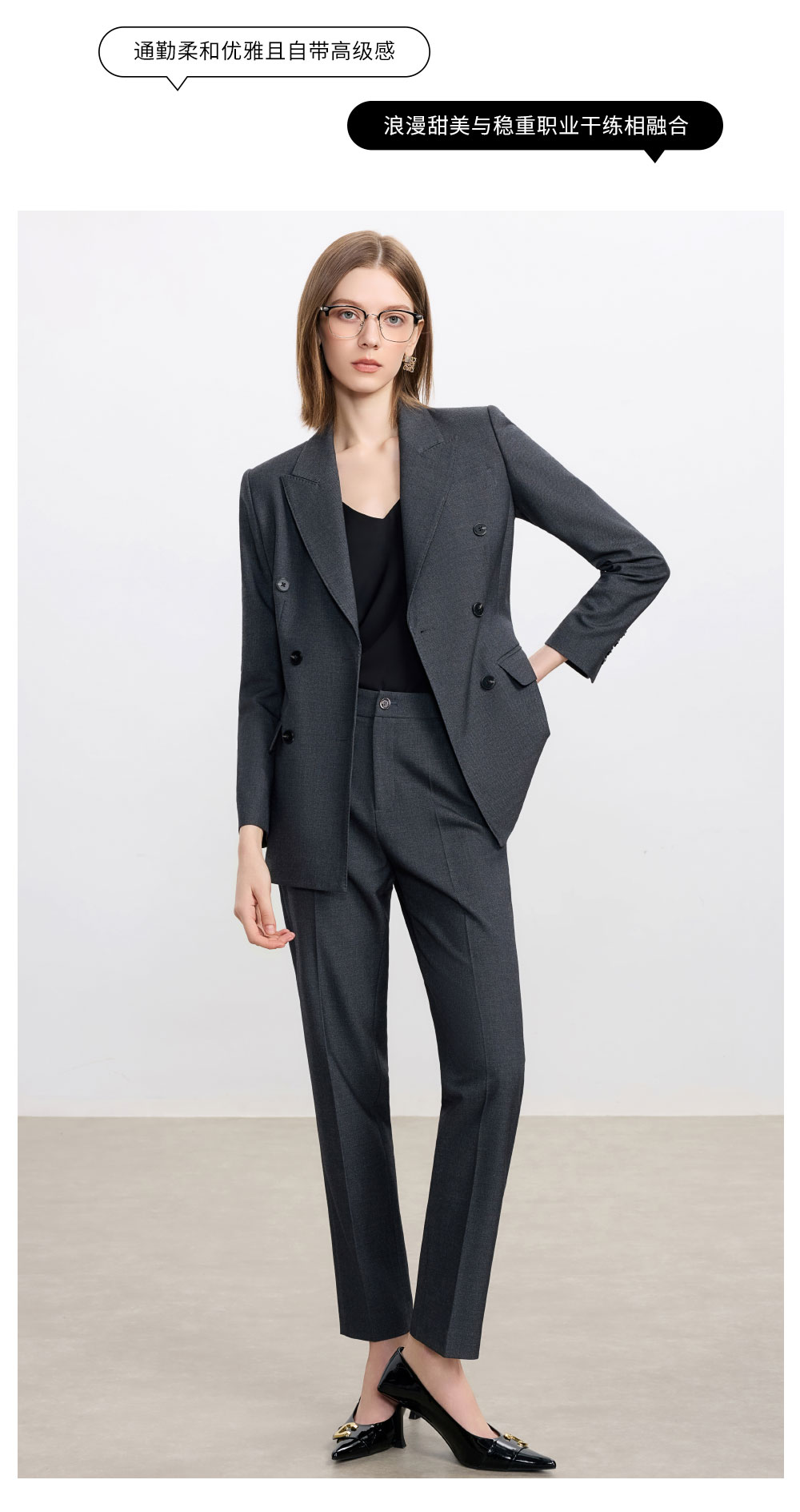 AD羊毛灰色西装套装女2025新款高级感职业装正装西服裤子两件套