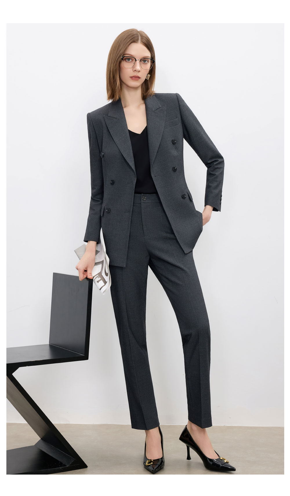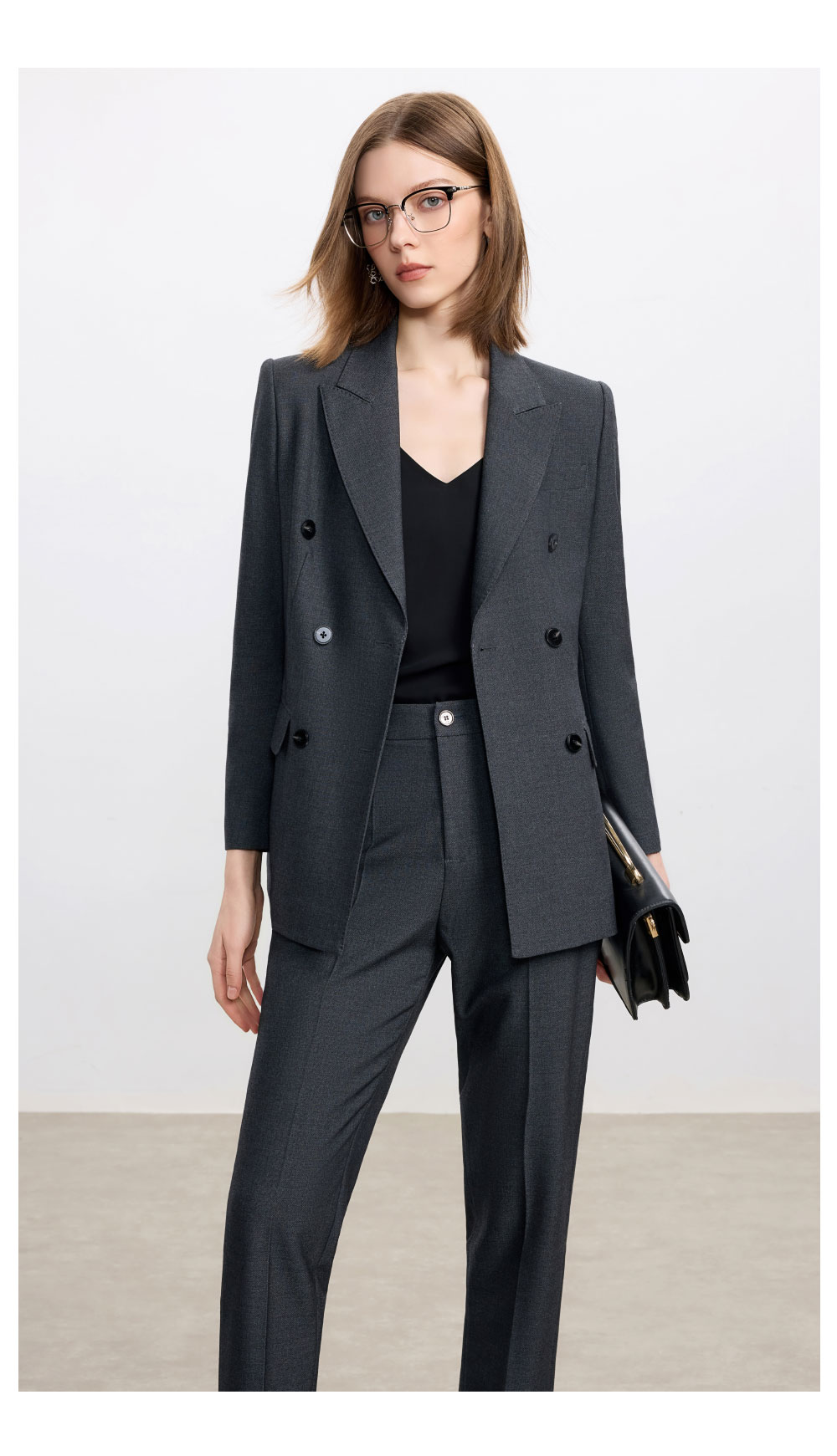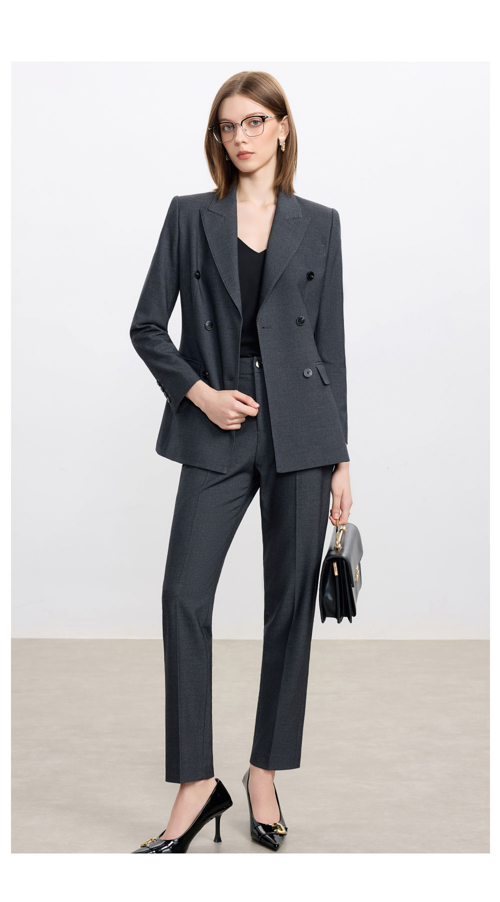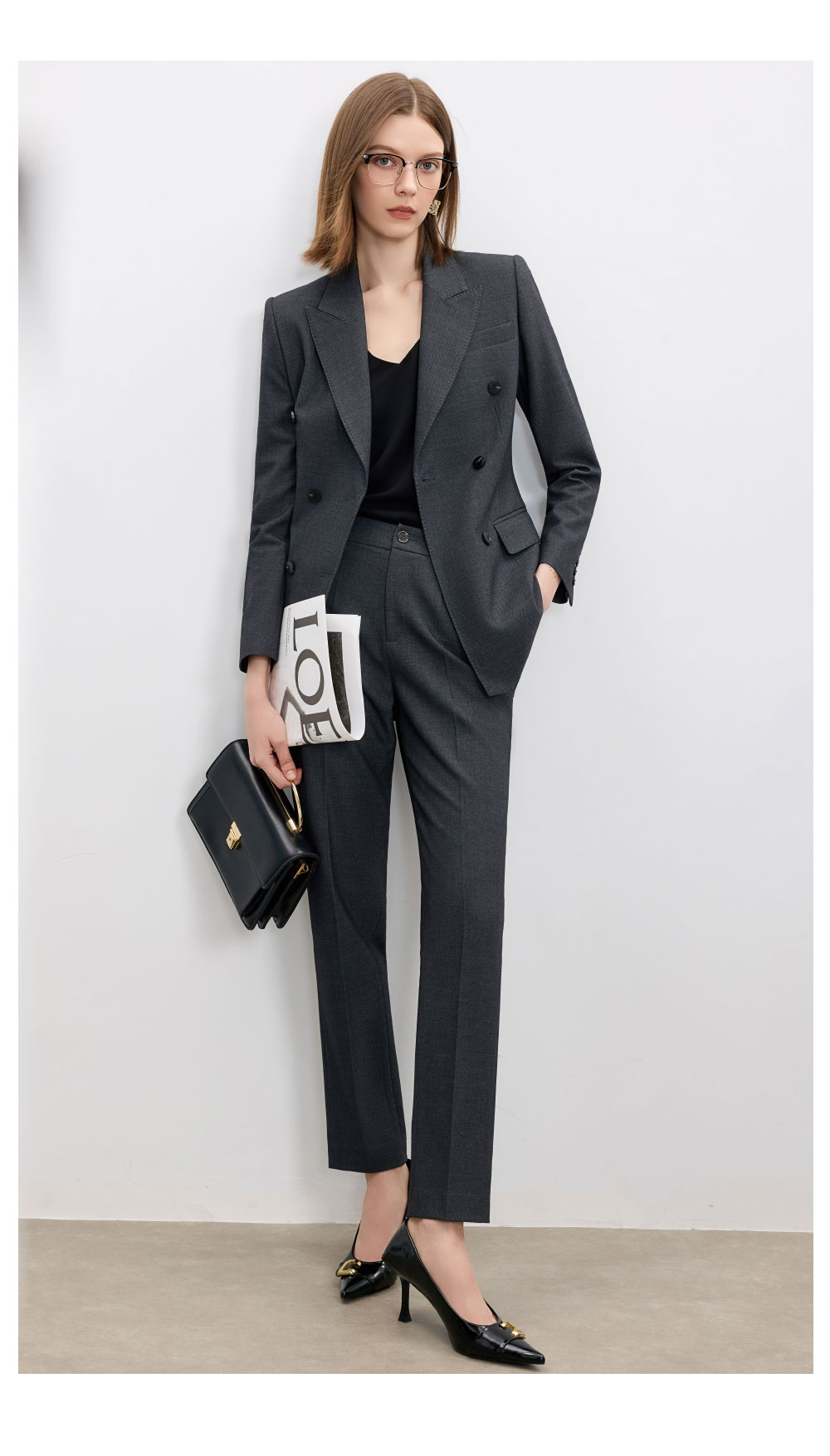 AD羊毛灰色西装套装女2025新款高级感职业装正装西服裤子两件套