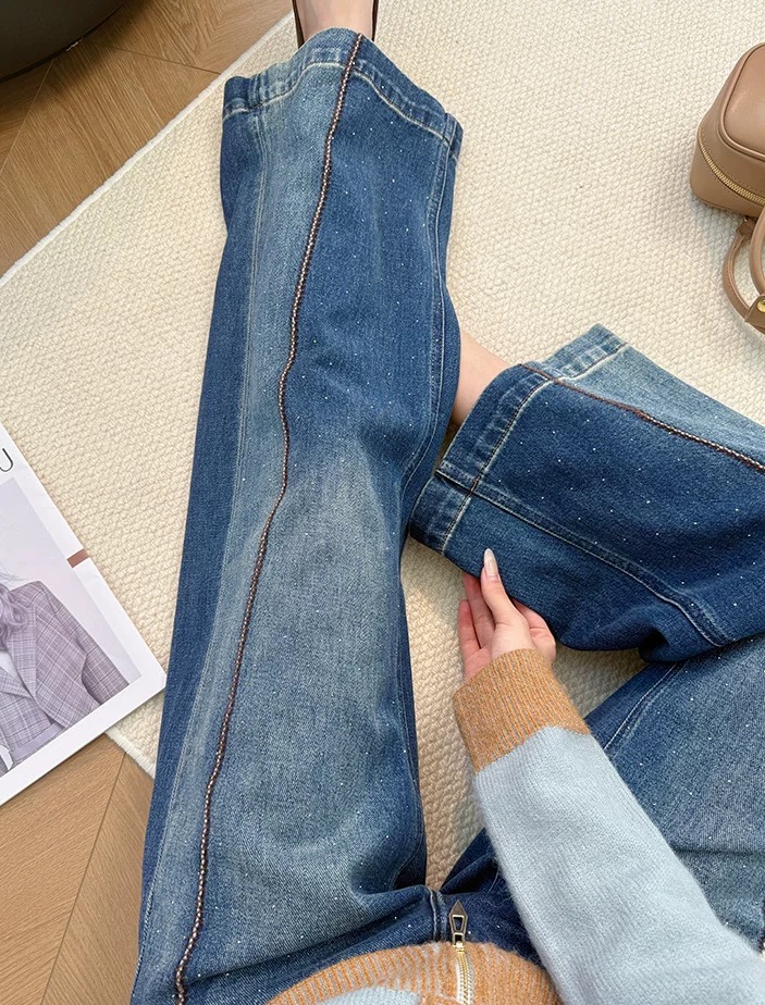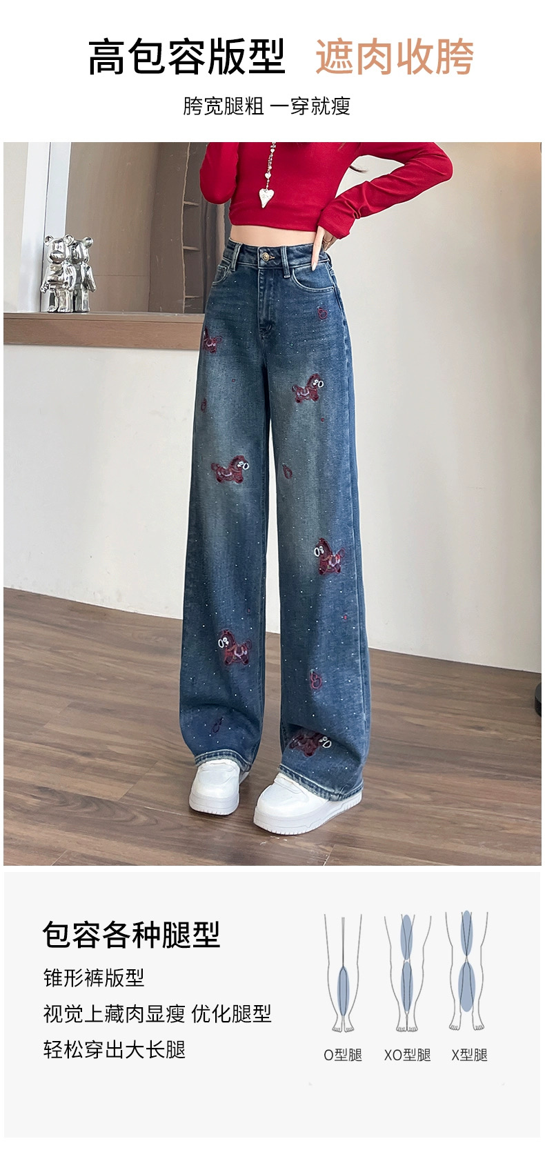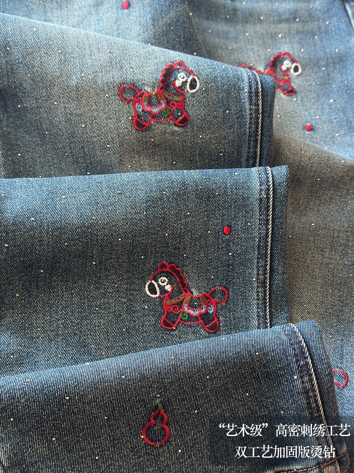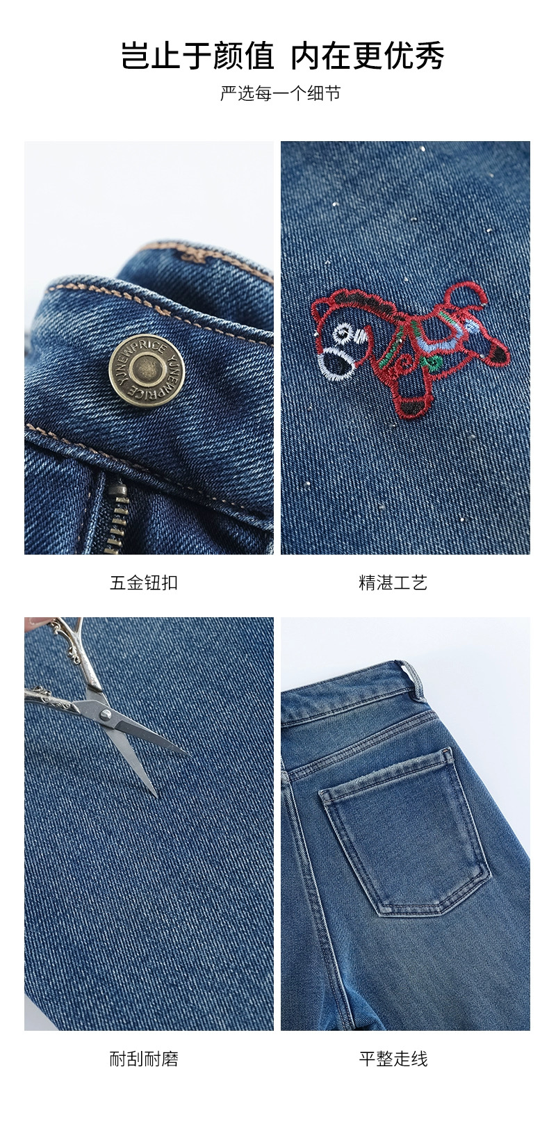法国Missboudior 鱼骨拼接烫钻满天星阔腿牛仔裤/小马刺绣烫钻阔腿牛仔裤 显高显瘦 宽松舒适