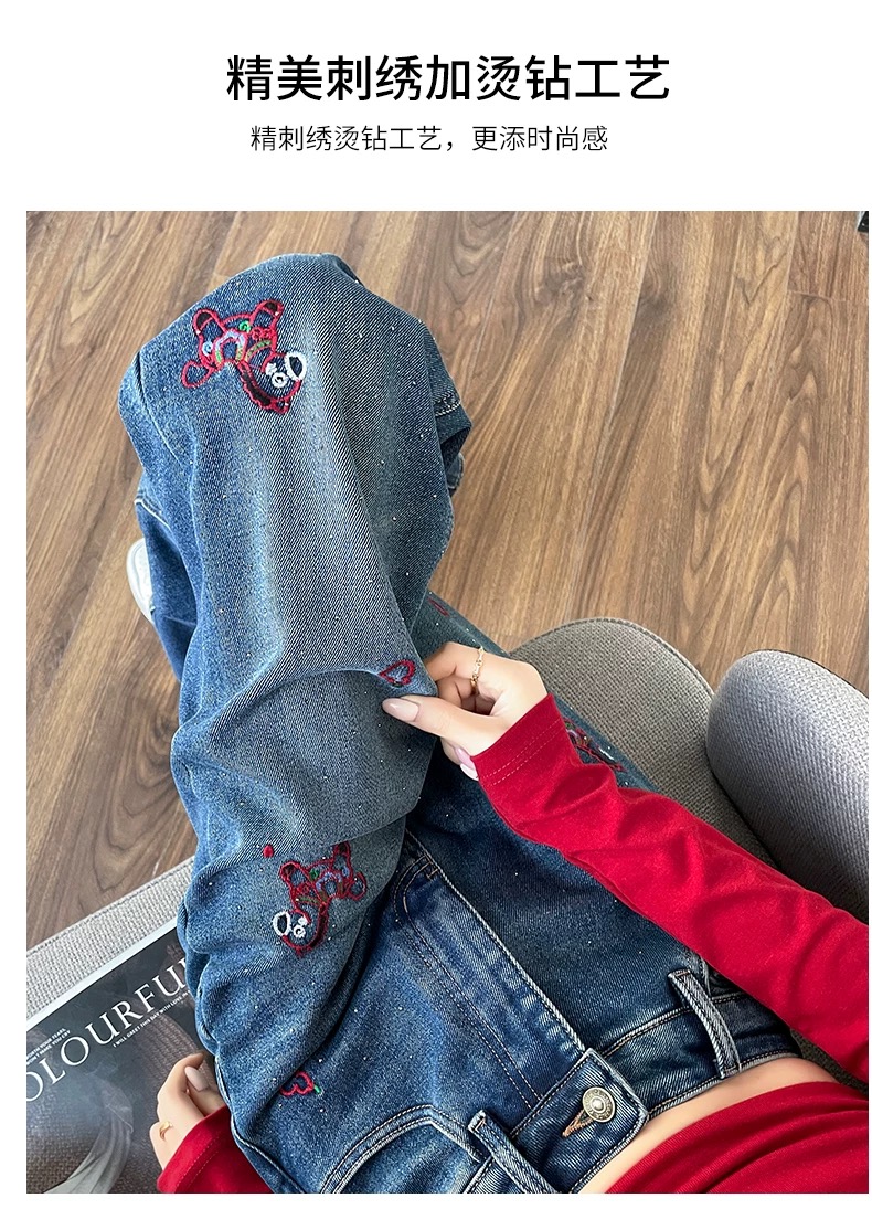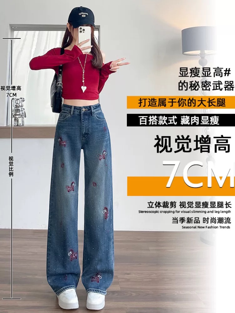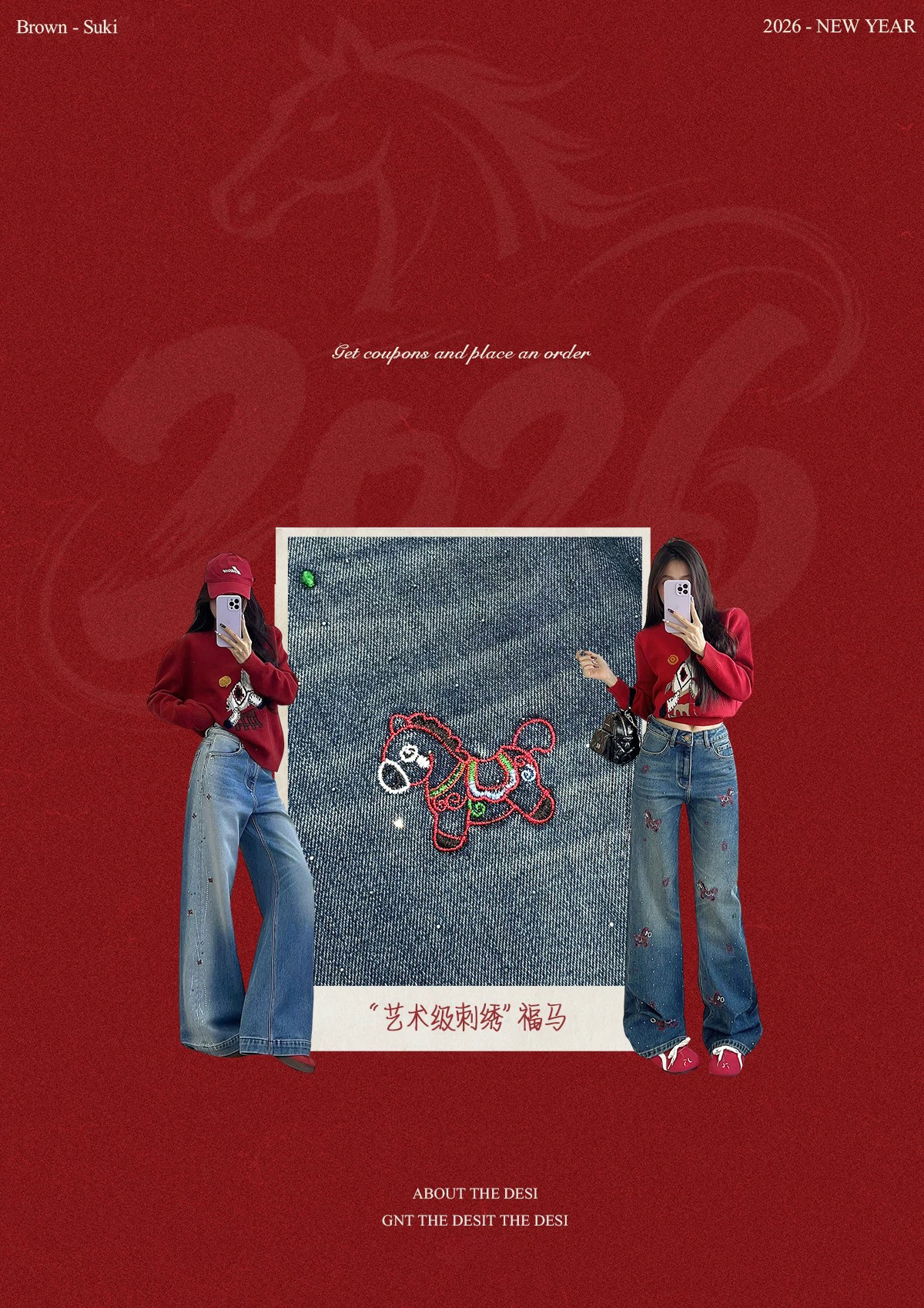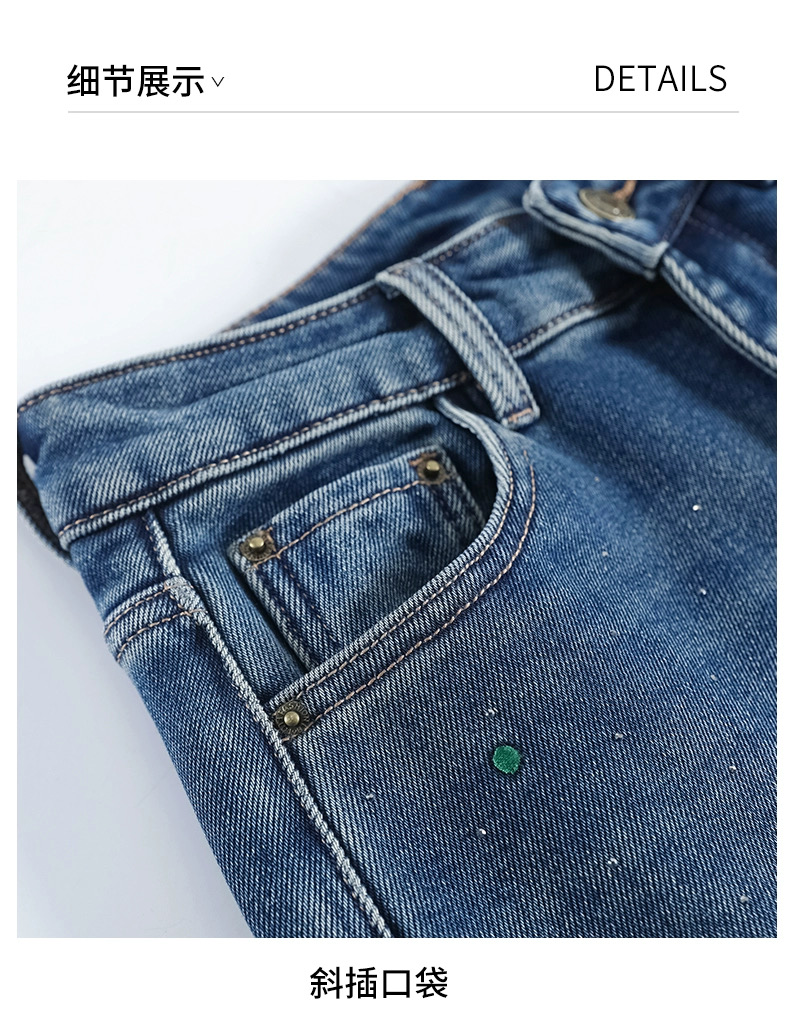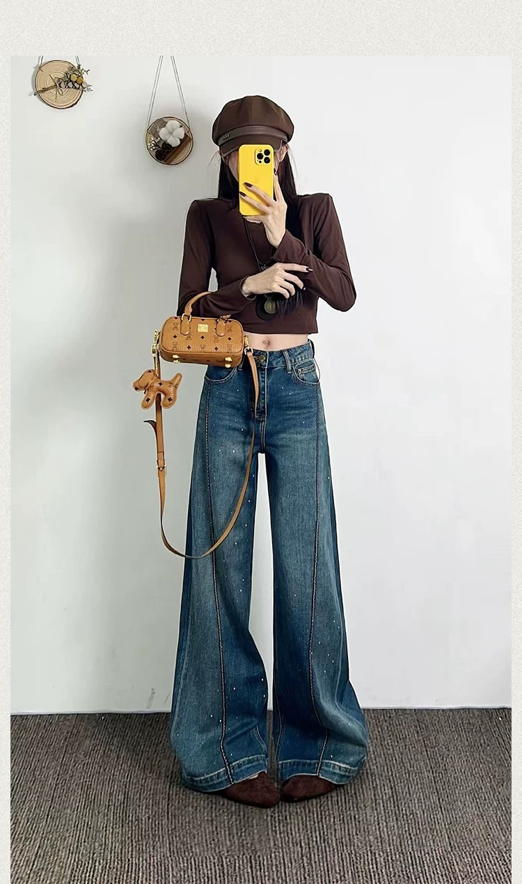 法国Missboudior 鱼骨拼接烫钻满天星阔腿牛仔裤/小马刺绣烫钻阔腿牛仔裤 显高显瘦 宽松舒适
