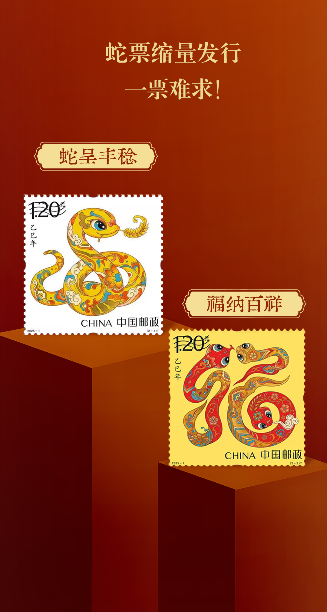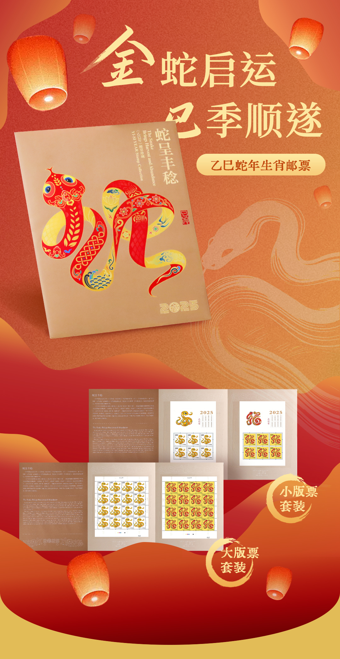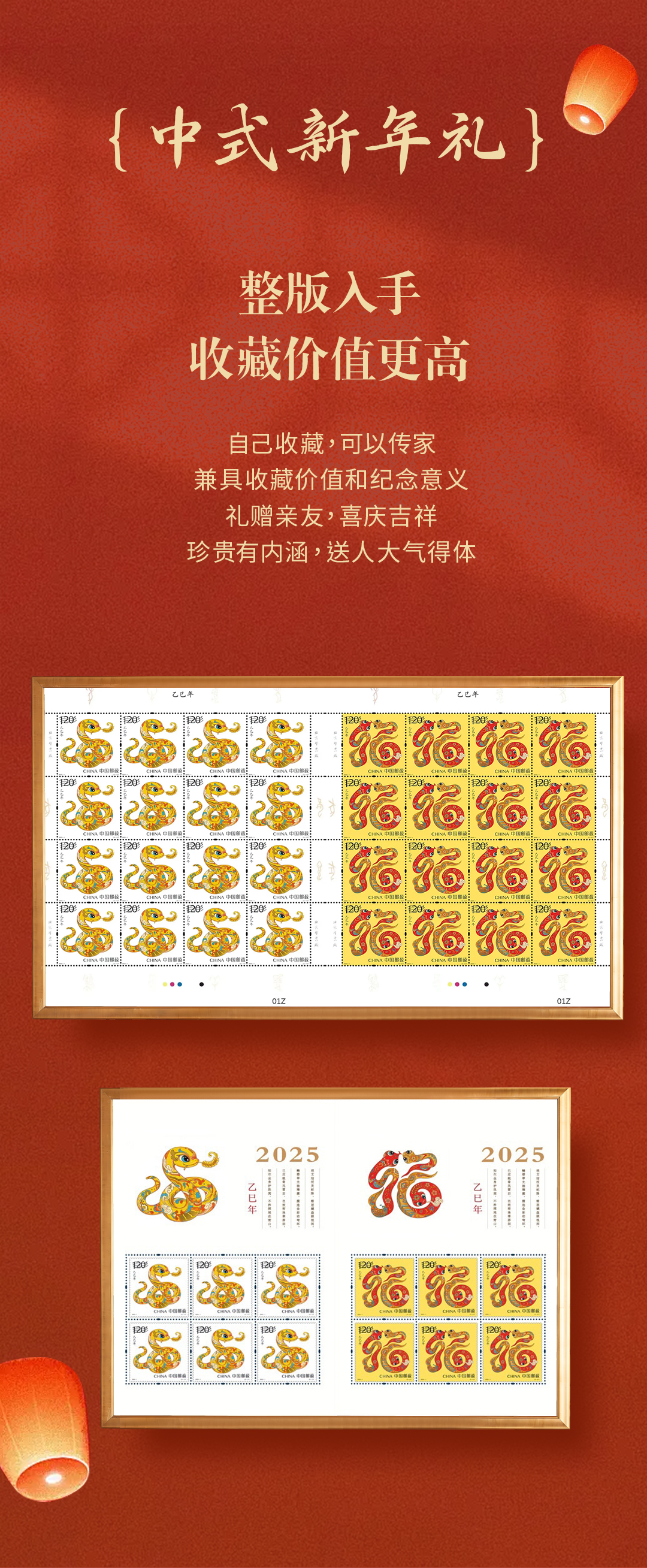 2025乙巳蛇年生肖邮票 大版票/小版票,吉祥喜气新年礼!邮政发行,真品保证